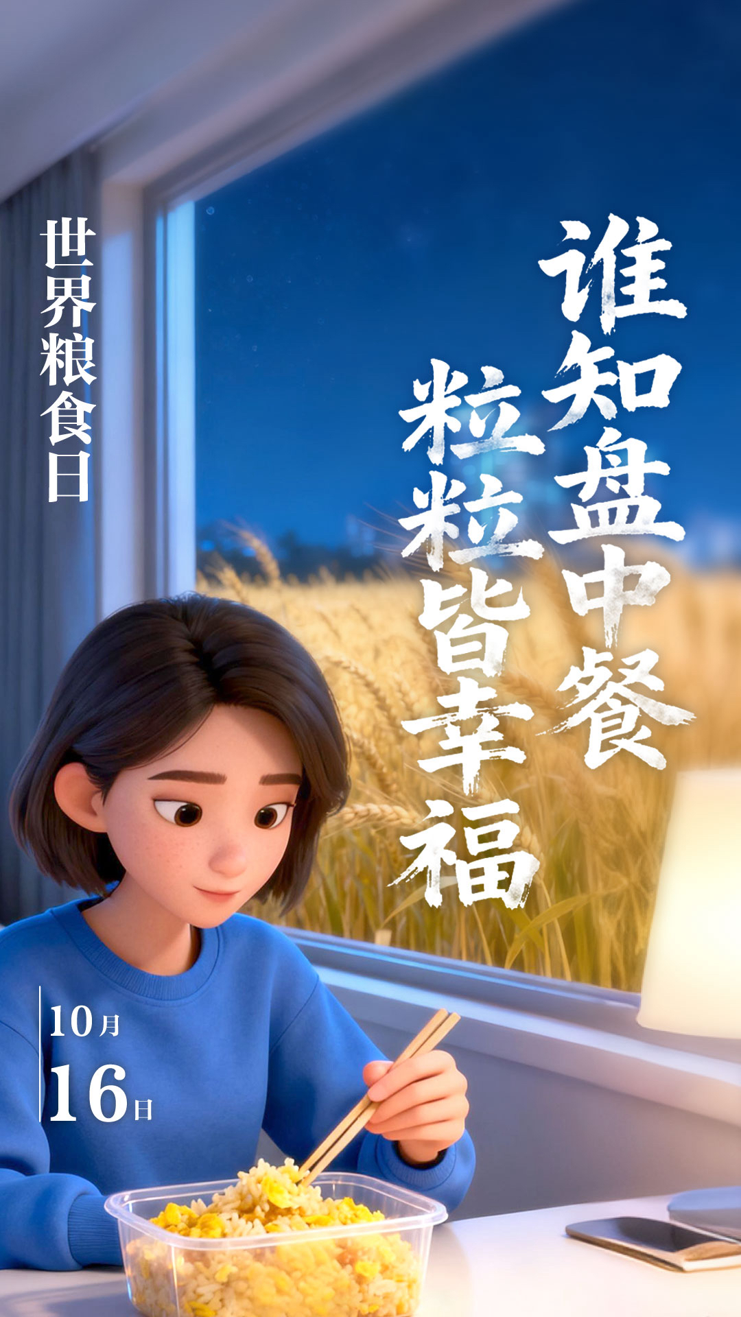 世界粮食日每年只有一天,但节约粮食、珍惜食物的行动却应贯穿于我们每一天的生活。正如视频所传递的温情:让我们“手拉手”,从珍惜每一餐开始,让适度、健康的消费习惯融入日常;让我们“聚合力”,在品味美食的同时践行节约,将每个人的微小行动,汇聚成迈向美好未来的坚实步伐。