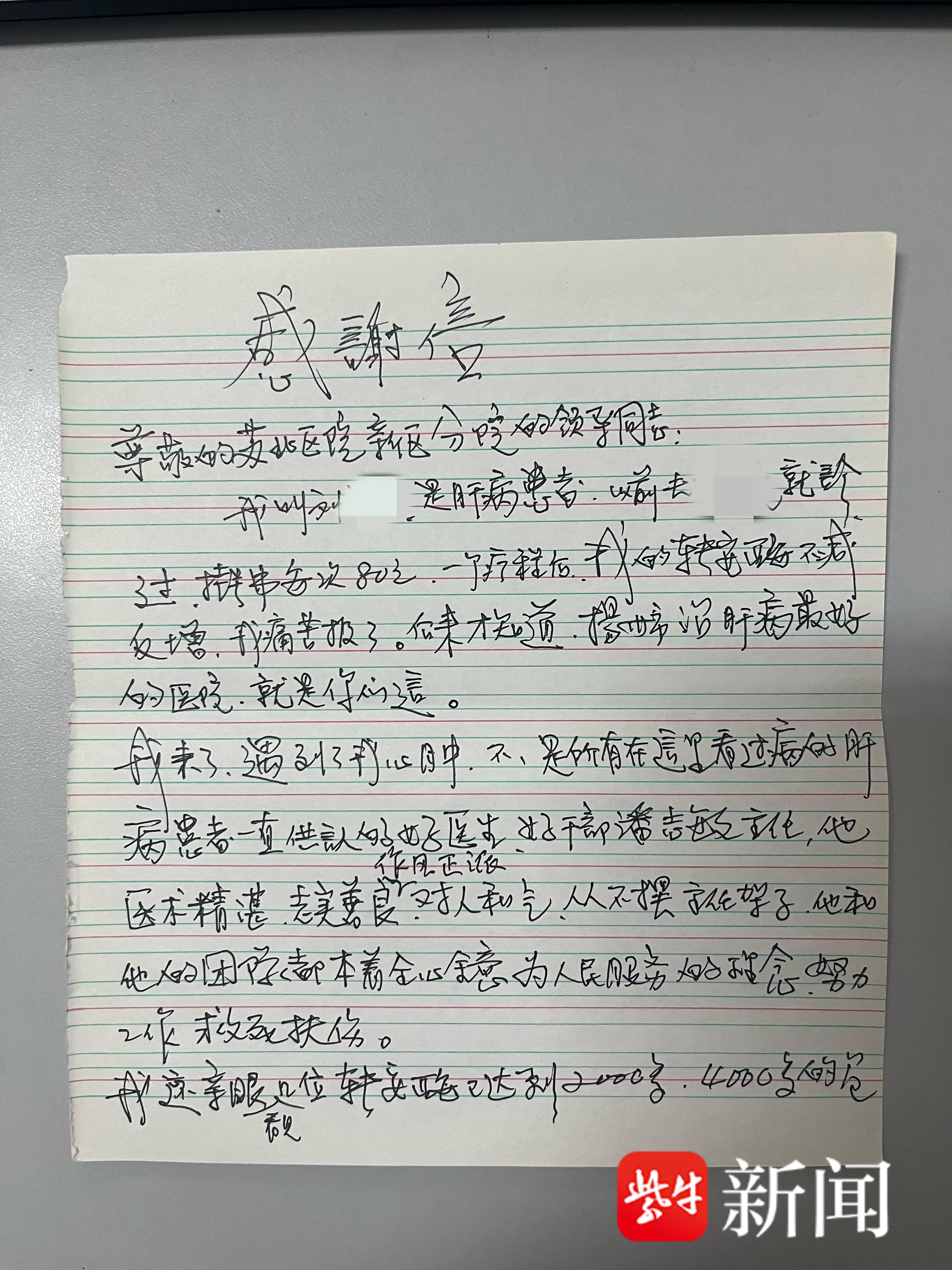 10月13日,扬州市第三人民医院(苏北人民医院新区分院)纪委办收到一封感谢信,字里行间满是作者对该院肝病科主任潘志敏的感激。