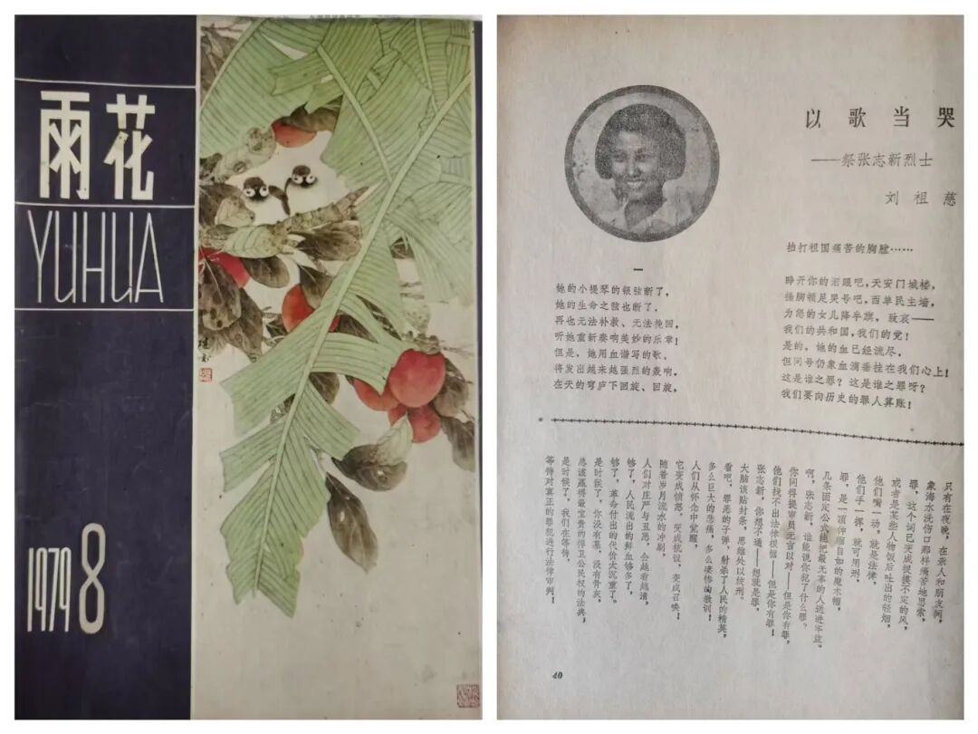 1979年9月下旬,一个星期天的傍晚,晚自习刚开始,班主任老师朱允恭走进教室。其时,我正捧着1979年第8期《雨花》杂志,朗读刘祖慈诗歌《以歌当哭——祭张志新烈士》。