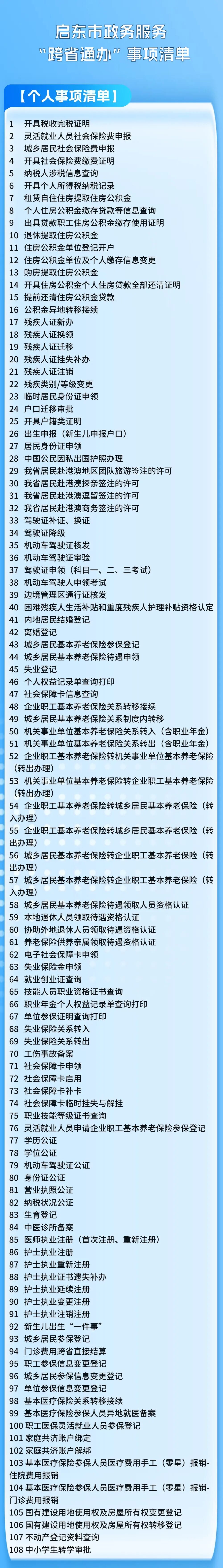 目前,全市156项“跨省通办”政务事项清单中面向个人的服务事项达108项,涵盖户籍、教育、就业、社保、医疗、养老等方面;面向法人的服务事项达48项,涉及经营主体登记、经营许可、涉税办理、项目建设等多个服务企业环节。