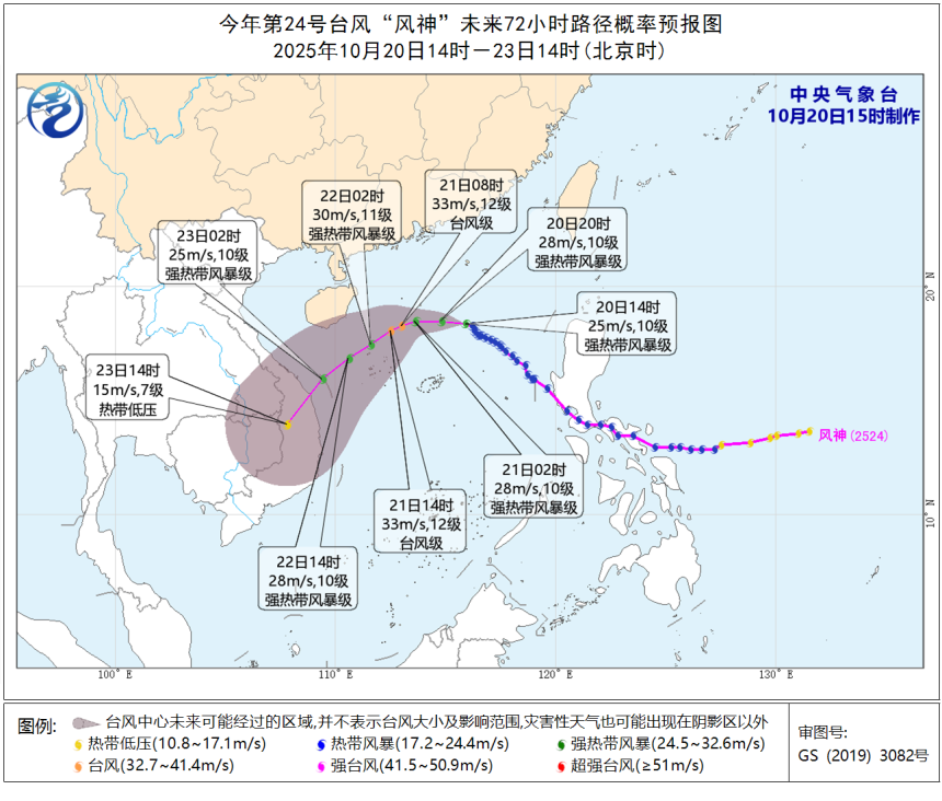 据中央气象台消息,今年第24号台风“风神”已进入我国南海,明天白天开始,受南下冷空气影响,它将在南海中北部海面转向西南方向移动,趋向越南中部沿海,强度逐渐减弱。