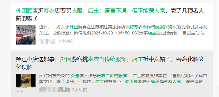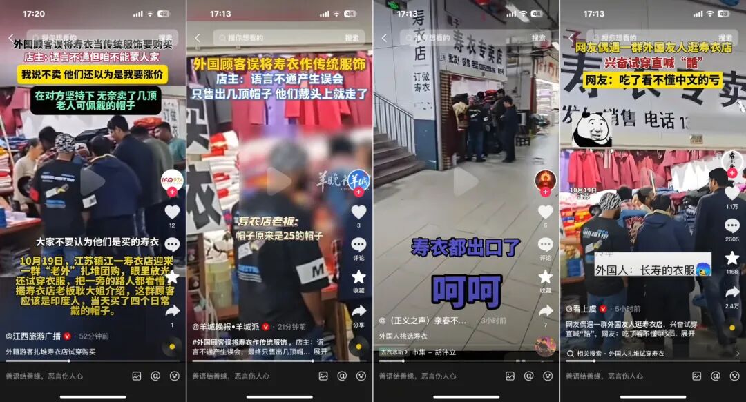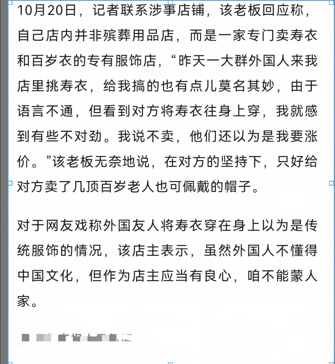 ”外国人买寿衣、试穿寿衣“的错误信息