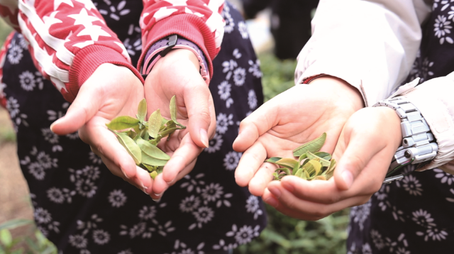 孩子们亲手触摸茶叶