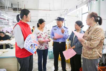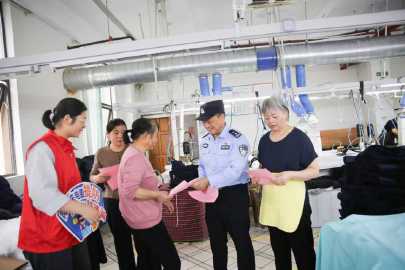近日,如皋市公安局高新区派出所组织民警深入城南街道各企业开展防范电信诈骗宣传活动,为企业职工送上“反诈大礼包”。