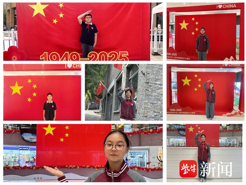 “如果信仰有颜色,那一定是中国红。” 国庆期间,镇江市街头巷尾飘扬的五星红旗成为最亮眼的风景。七年级学生主动寻找国旗身影,在广场、校园、社区等场所定格与国旗的同框瞬间:有的手持小国旗微笑比心,有的以飘扬的大国旗为背景合影,一张张灿烂的笑脸里满是对祖国的热爱。“每一张合影都是一句‘我爱你中国’,我们想用最直接的方式向祖国告白。” 参与活动的学生表示,与国旗同框的时刻,民族自豪感在心中油然而生。