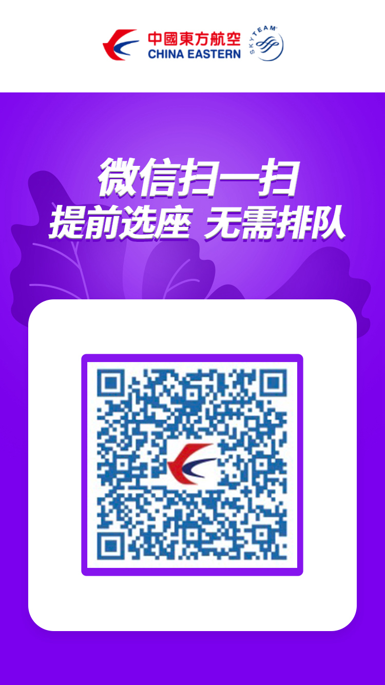 聚焦于旅客实际需求,东航江苏公司地面服务部在总部的支持下,向旅客提供了“提前选座 无需排队”专用二维码,以提示插牌的形式放置在国内值机柜台C岛蛇形排队区。