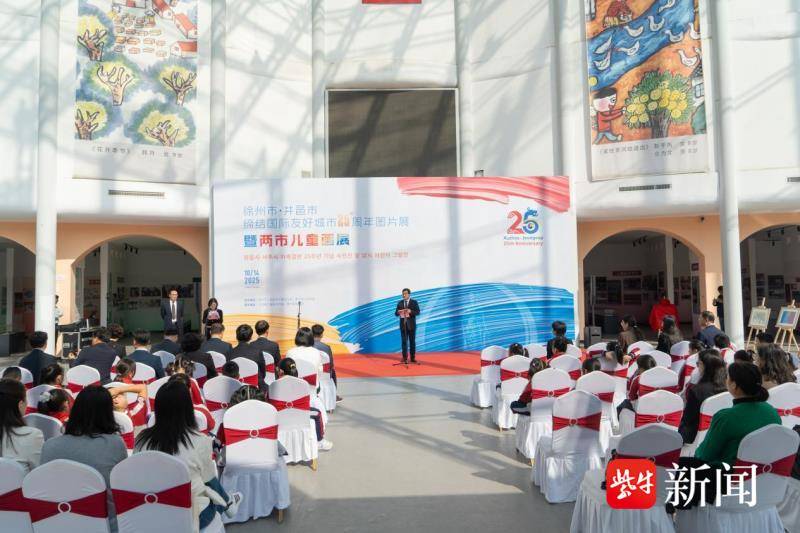 近日,徐州市与韩国井邑市缔结国际友好城市25周年图片展暨两市儿童画展,在睢宁县儿童画活动中心拉开帷幕。