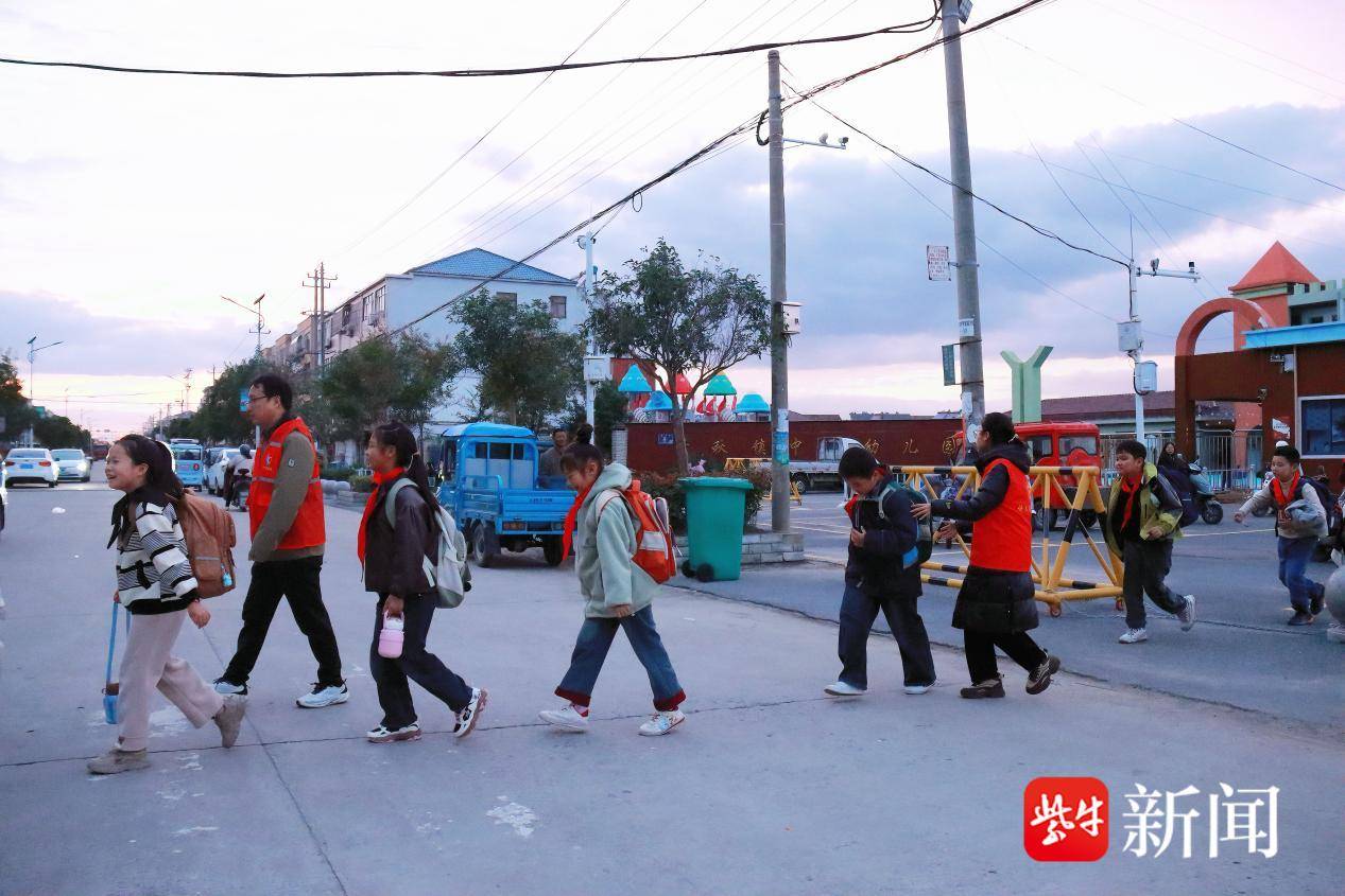 下午五点的千秋小学门口,温情涌动。“小朋友,慢点,阿姨牵你过马路。”“射阳河小水滴”志愿者杨玲弯下腰,牵起一年级学生小明的手,并举牌示意车辆减速。不远处,几位家长志愿者正引导电动车辆有序停放——这是“小手牵大手”护学行动的日常一景。千秋镇整合学校、社区、家长等多方力量,常态化开展护学志愿服务,不仅筑起了校园周边的安全屏障,更在孩子心中播下了文明的种子,在家长眼中传递着互助的温度,推动形成了“人人参与、共建共享”的文明育人新格局。