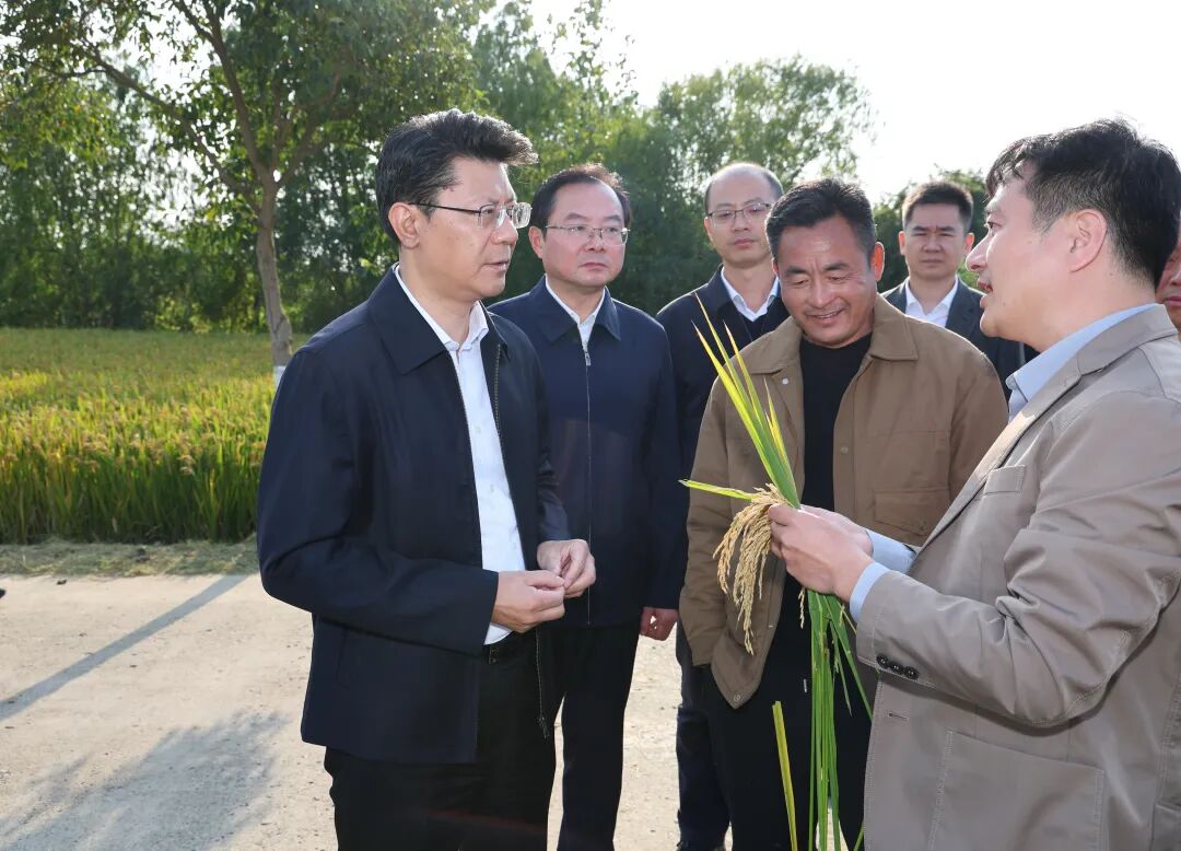 风吹稻浪,稻谷飘香。当前,扬州秋粮生产进入关键期。10月24日下午,扬州市委书记王进健赴邗江区调研“三秋”农业生产情况。他强调,要认真学习贯彻党的二十届四中全会精神,深入学习贯彻习近平总书记关于“三农”工作的重要论述,抢抓农时、科学施策,全力做好秋收、秋耕、秋种各项工作,提升农业综合生产能力和质量效益,切实保障粮食丰产丰收、农民增收致富。扬州市委副书记、秘书长焦庆标参加活动。