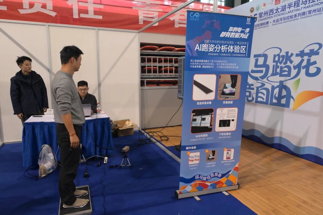 这背后是“领存智控——智赛通”系统的支撑,从预约到领物信息同步数据库,全流程数字化零人工误差。现场AI跑姿分析区同样人气很高,工作人员演示:“检测记录落地重心、发力均衡度,赛后给出专属调整建议,帮大家冲PB!”不少跑者当场预约,科技感拉满的首日领物,提前点燃参赛热情。