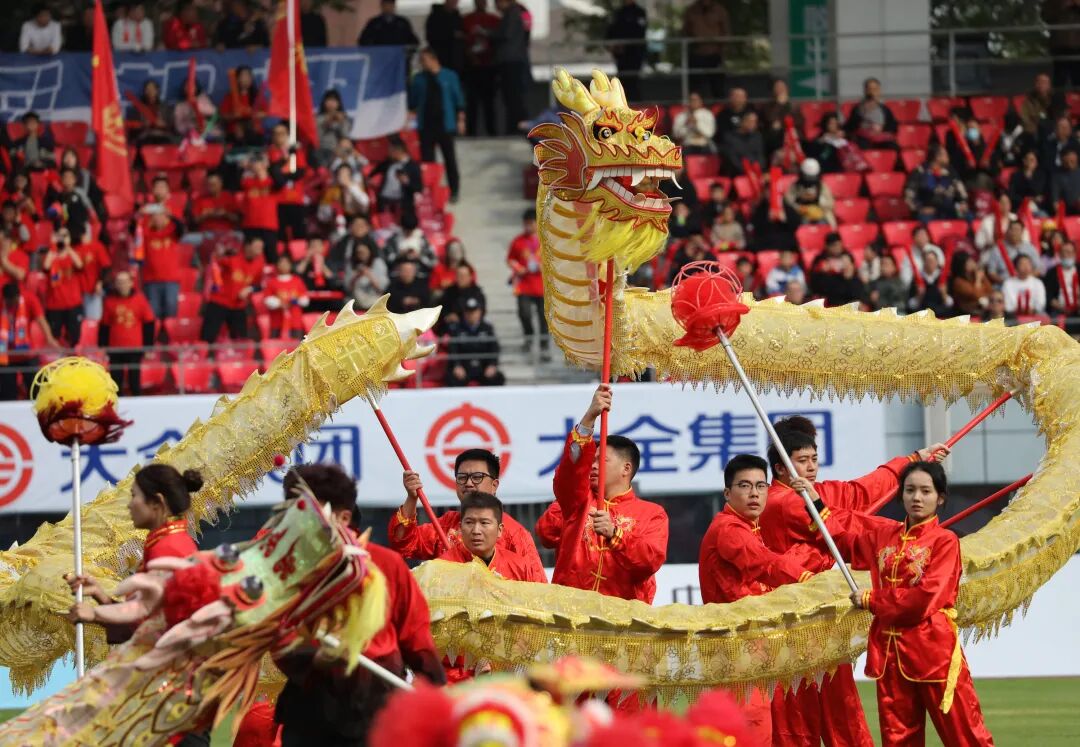 揭幕战在激昂的鼓点与舞龙表演