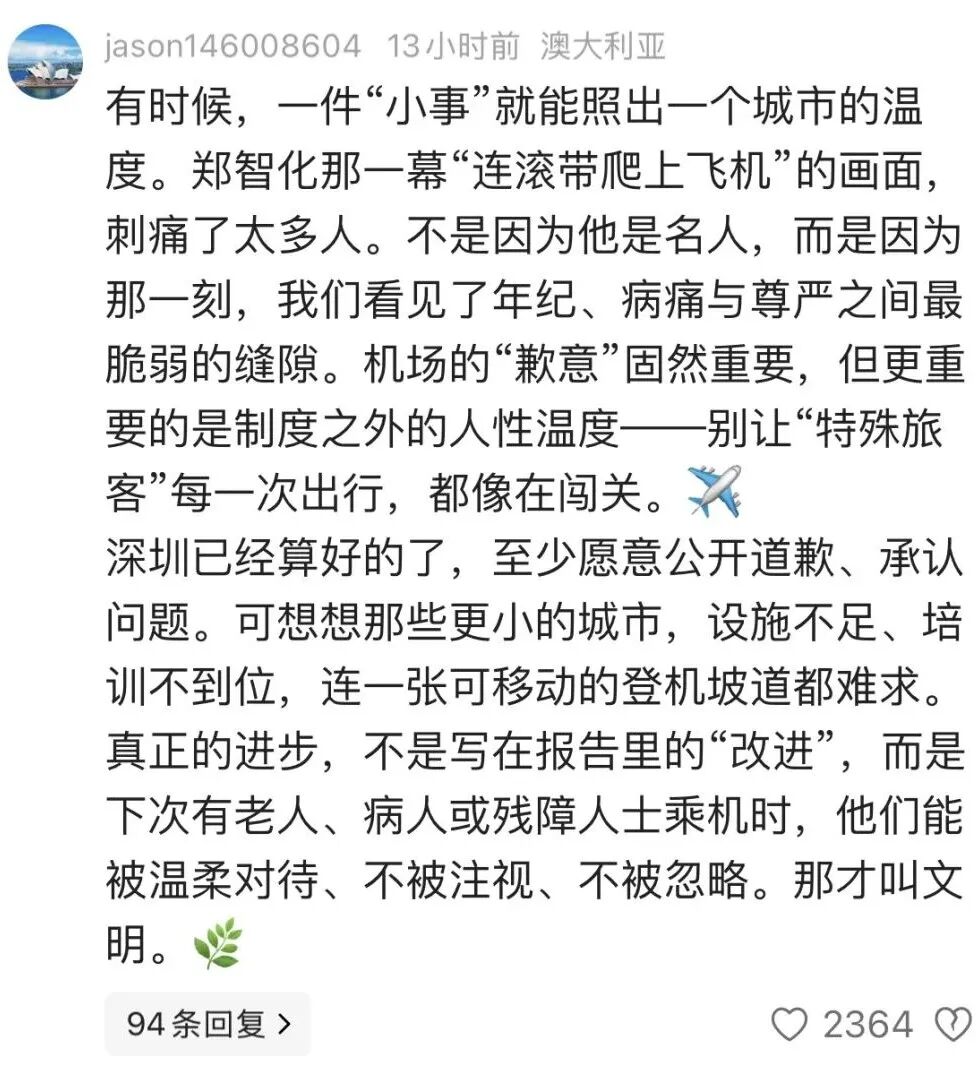 郑智化称自己“连滚带爬进飞机”,发文怒斥深圳机场,官方回应