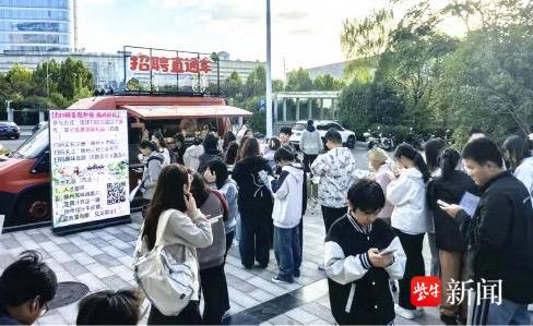 10月22日,一辆满载人才政策折页、扬州产业地图等资料的“招聘直通车”驶入扬州职业技术大学,车内设置了咖啡休闲区、简历投递区与政策咨询台,俨然一个功能齐全的“移动人才服务站”。人才政策专员现场提供精准、全面的政策解读服务,帮助学生们了解扬州、规划未来,高效对接就业资源。