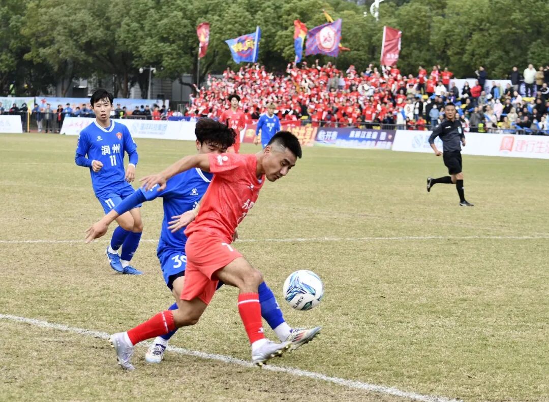 下半场刚开始,丹阳队便迅速断球发动反击,通过流畅的进攻组织将球推进至前场,65号中场球员马博闻如利剑般插入防守空当,接队友传球后冷静推射破门,2:0!此次闪电进球彻底点燃了随队球迷的热情,也几乎提前锁定胜局。