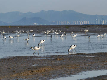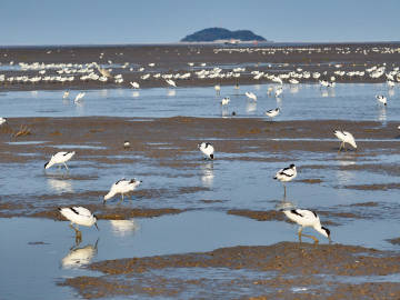 沿海湿地迎来大批反嘴鹬
