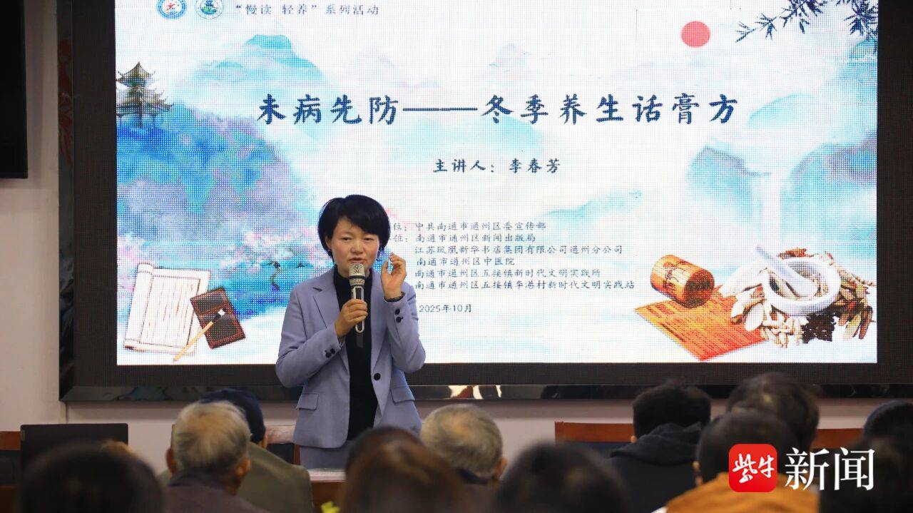 冬日蕴藏,养生正当时。为弘扬中医药传统文化,助力社区居民科学调养,增强冬季健康管理能力。近日,南通市通州区五接镇新时代文明实践所联合南通市通州区委宣传部、南通市通州区新闻出版局、江苏凤凰新华书店集团有限公司通州分公司、南通市通州区中医院开展了一场以“未病先防——冬季养生话膏方”为主题的“慢读 轻养”系列健康讲座,引导居民走出进补误区,健康科学“储冬”。