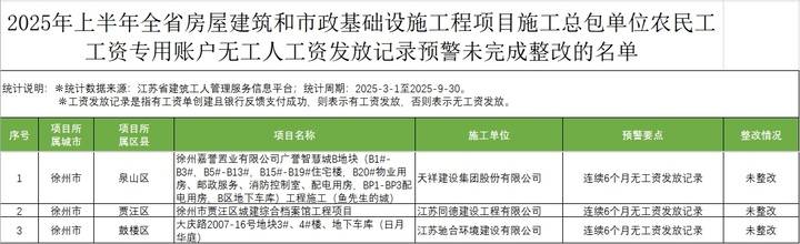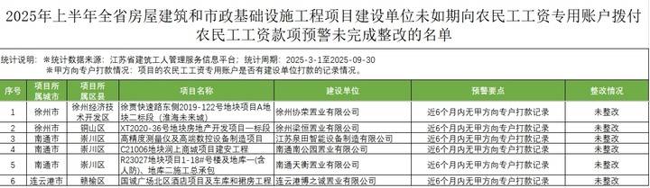 江苏要求未完成整改的责任单位和人员应于2025年11月30日前按要求整改到位,并向当地建设行政主管部门报备,逾期未整改到位项目的责任单位和人员,省住房城乡建设厅将报省就业促进和劳动保护工作领导小组办公室,依法实施联合惩戒。