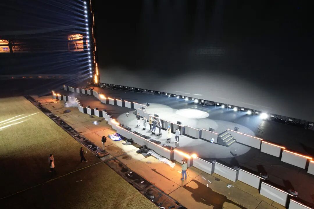 “屏幕呈15度弧面设计,确保每个角落的观众都能感受到现场演出的震撼。”舞美制作负责人吕渊介绍,尽管常州作为“青春乐都”一年举办数百场演出,但这场完全免费的音乐剧晚会,却使用了常州有史以来最大的一块巨幕。
