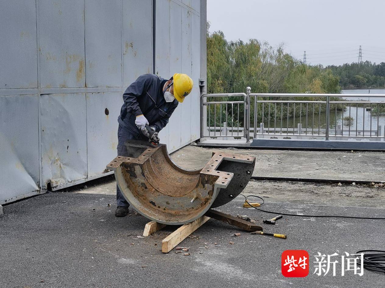 昨日,记者走进连云港市临洪水利工程管理处临洪东站管理所,现场金属敲击声此起彼伏,工作人员正为11号机组的水导轴承除锈;不远处,技术人员则在冷却器旁进行耐压测试。