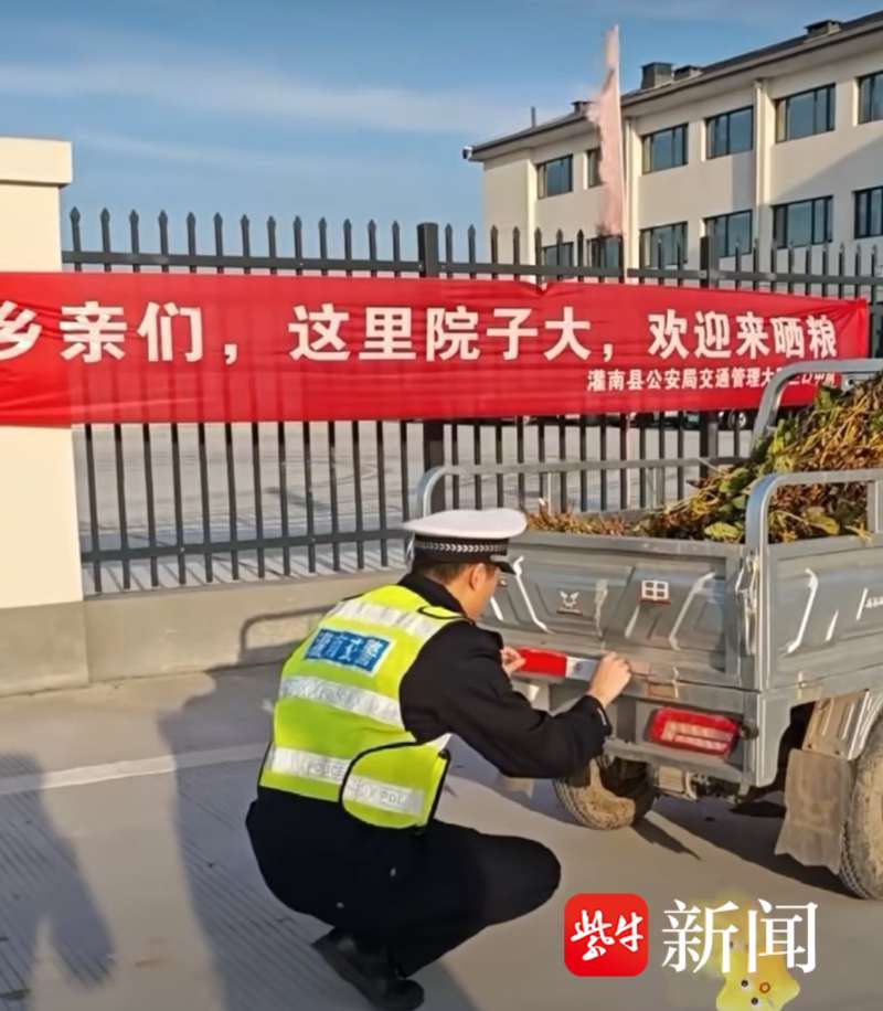 “‘开院晒粮’既保障了村民秋粮不受损,又避免了占道晒粮的安全隐患。我们希望以此帮到群众,真真切切解决村民的实际困难。”看到群众来中队大院晒粮,值班民警、辅警热情接待,主动帮助晾晒,收工时还不忘免费帮助农用三轮车粘贴上反光标识,提醒村民戴好安全头盔、文明守法安全行驶。