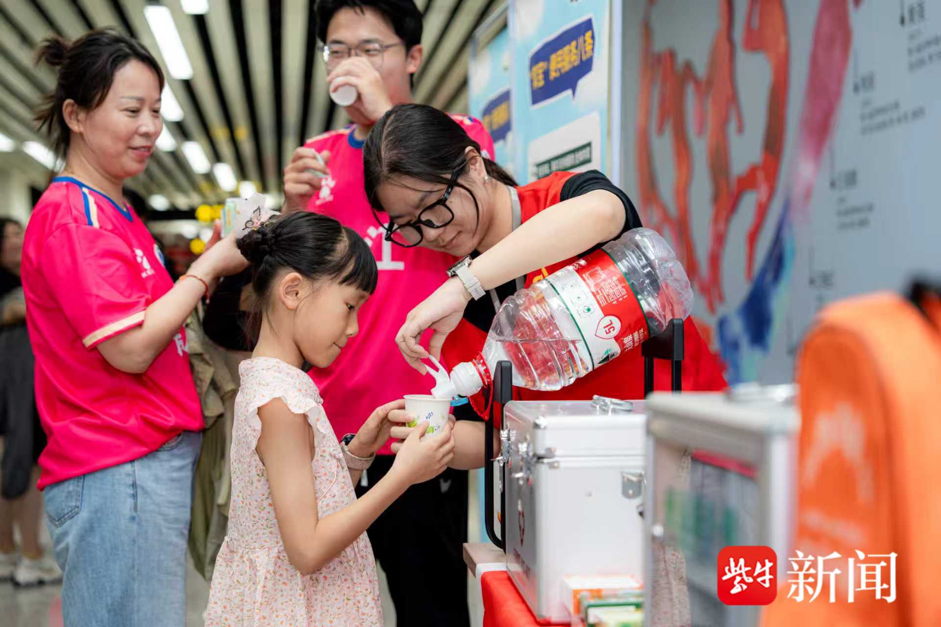 赛事服务更在细节处彰显人性化关怀。6月21日,常州遭遇持续降雨,常州地铁迅速响应,在各站提供免费雨伞借用服务,并在出入口铺设防滑地垫、摆放“小心地滑”警示牌。车站于重点部位增派引导人员,不间断进行安全提醒,全力保障球迷雨天观赛之路的安心与顺畅。 有比赛的日子里,在奥体中心站、市民广场站、常州火车站等关键站点,地铁方面均设置了志愿服务点,配备有针线包、急救箱、AED、饮用水及防暑药品等物资。此外,全线车站还贴心地配备了藿香正气水、清凉油等防暑物资,全力保障高温天气下乘客的健康与安全。