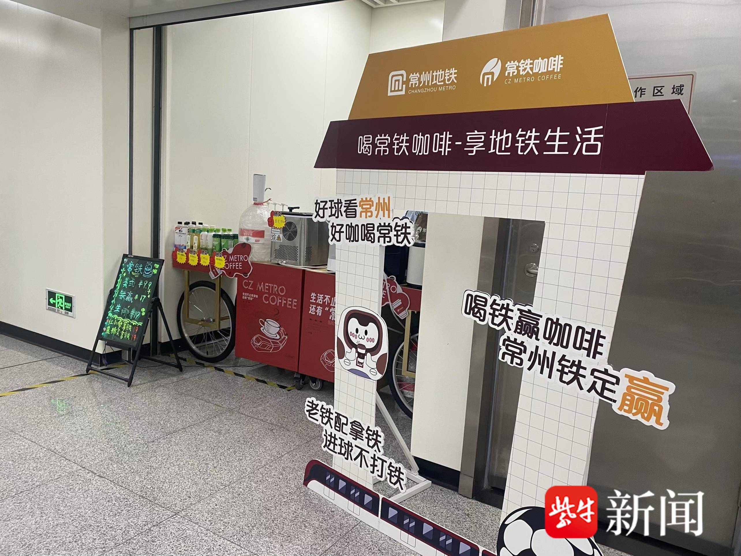此外,常州地铁还巧妙融合城市消费与文体热点,在部分站点设置了 “常铁咖啡” 特色服务点。一杯印有常州地铁Logo的香浓咖啡,成为许多球迷赛前提神、赛后回味的最佳伴侣。许多球迷手持“常铁咖啡”,在精心布置的 “苏超现场” 打卡点前合影留念,将观赛的激动瞬间与城市记忆一同定格。