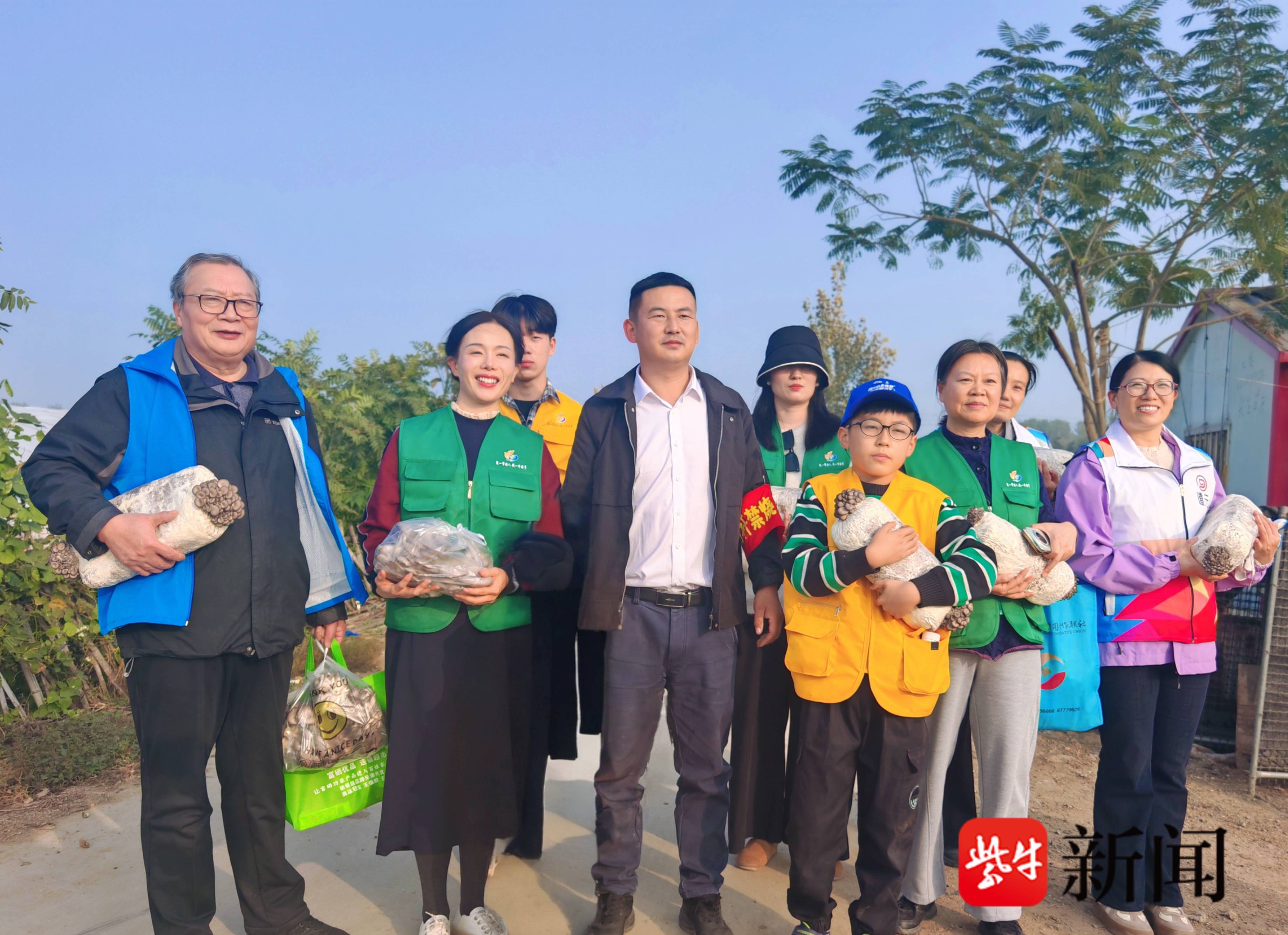 随后,队伍转战生态蘑菇种植园。与收获花生的“大力出奇迹”不同,蘑菇采摘考验的是耐心与细致。在阴凉湿润的菇棚内,技术员详细讲解了采摘要领。孩子们与志愿者协作,提篮细寻,轻旋采摘,在欢声笑语中收获了满篮的“小伞”,也对现代生态农业有了直观了解。