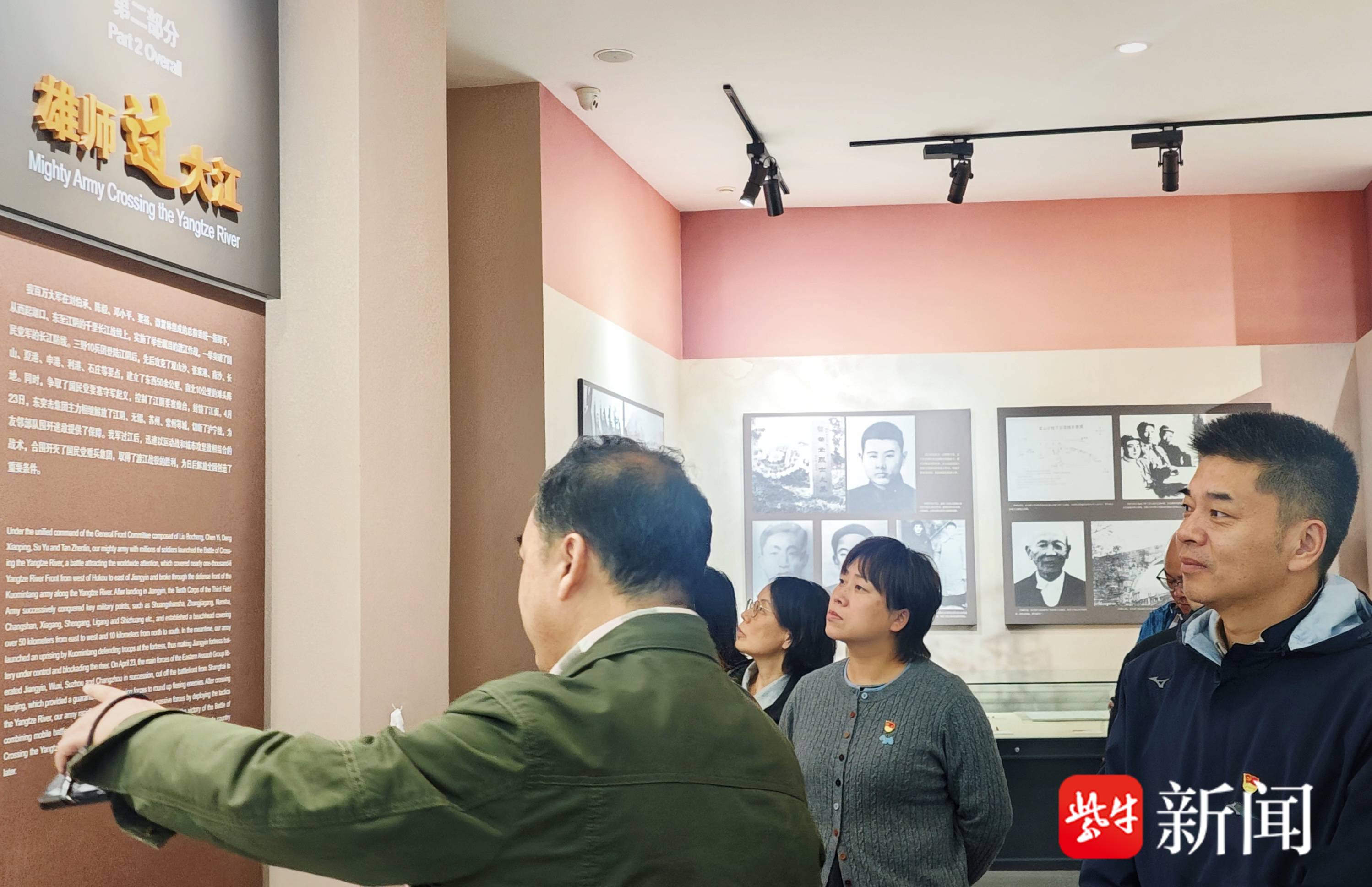 随后,教师们走进以数字智慧为特色的渡江战役纪念馆,教师们扫码了解展馆概况,了解“统筹谋良策”“雄师过大江”“古城迎新生”三大展区核心文物背后的故事。“现在的人工智能技术真先进,手机一扫,背后的故事清晰明了。我们在备课环节,往往涉及到很多危化品化学实验过程,直接让学生全部参与又很危险,因此我想到,今后可以建设数字化资源库,以动画形式让学生参与其中,这样既便捷又安全。”徐洁老师表示。