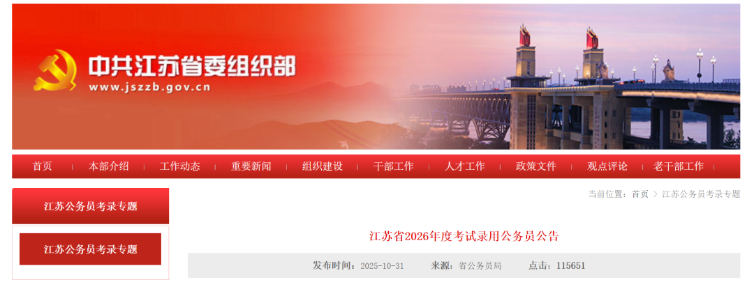 各招录机关的招考人数、具体职位、考试类别、资格条件等信息可通过以下网站查询:中共江苏省委组织部网站(www.jszzb.gov.cn)、江苏省人力资源和社会保障厅网站(jshrss.jiangsu.gov.cn)及各设区市相关网站(见附件1)。有关报考政策规定、网络报名要求等事宜详见《江苏省2026年度考试录用公务员报考指南》。报考者对招录职位的专业、学历、学位、技能、证书等资格条件以及基层工作经历等有疑问需要咨询时,可直接与招录机关联系。招录机关的咨询电话见附件2。