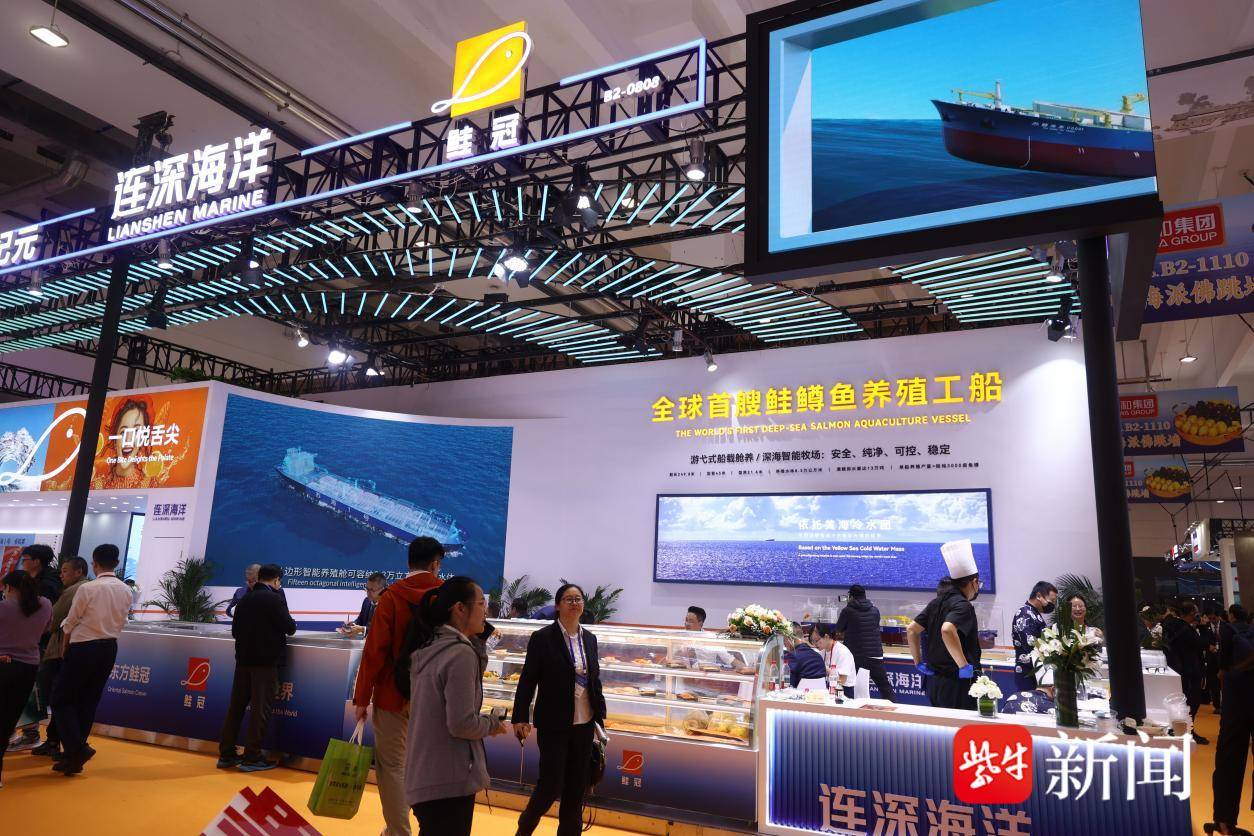 江苏连深海洋科技有限公司携全国首艘三文鱼养殖工船“苏海1号”模型惊艳登场,集中展示了赣榆区在深海智慧养殖领域的领先技术,并带来高品质鲑鳟鱼系列产品,引发业界关注。展区客商云集,气氛热烈。其中连云港三开食品有限公司依托从原料到成品的全程可追溯体系,以严格标准筑牢安全屏障,其调味鲈鱼、调味黄鱼、野生海龙等多款明星产品吸引众多客商驻足洽谈。