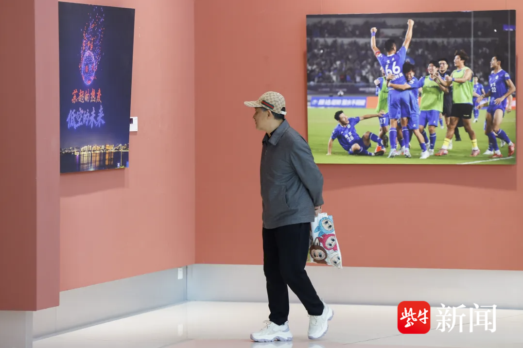 11月1日,“苏超”决赛当天,“苏超”优秀摄影作品展已在南京奥体中心东广场正式拉开帷幕。许多球迷纷纷在摄影作品前驻足打卡,沉浸在体育和艺术带来的热烈欢快的氛围中。