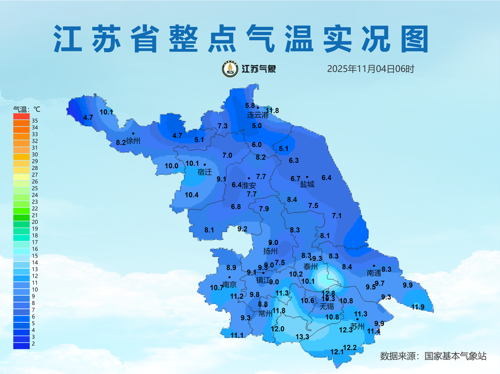 全省最低气温仅有4-12℃