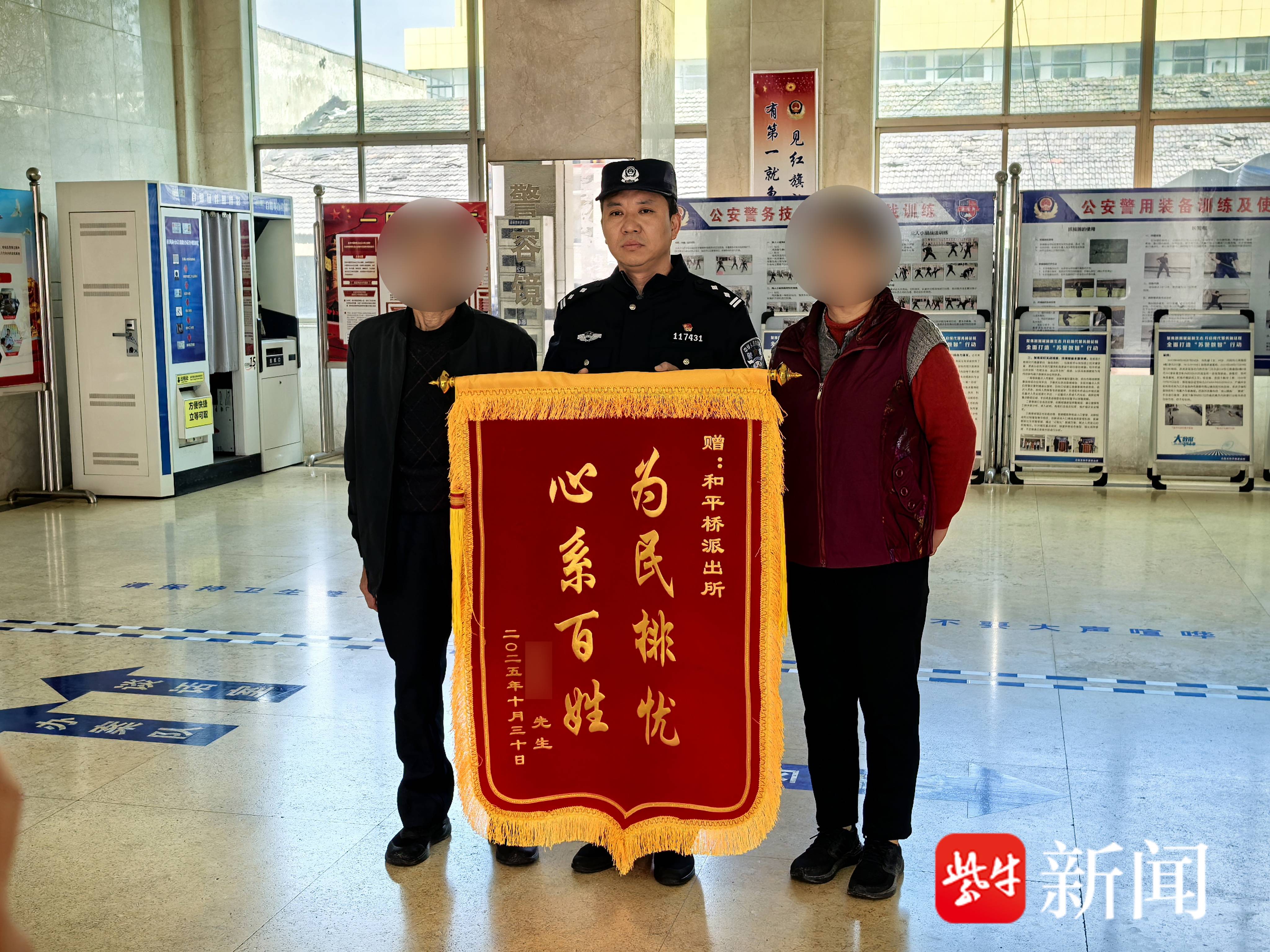 10 月 31 日上午,黄女士和丈夫专程来到丹阳市公安局云阳派出所,将一面印有“为民排忧 心系百姓”八个大字的致谢锦旗送到民警手中。黄女士再次哽咽,并深深鞠躬,声音颤抖地说:“感谢你们帮我找到我的母亲,真的非常感谢!”