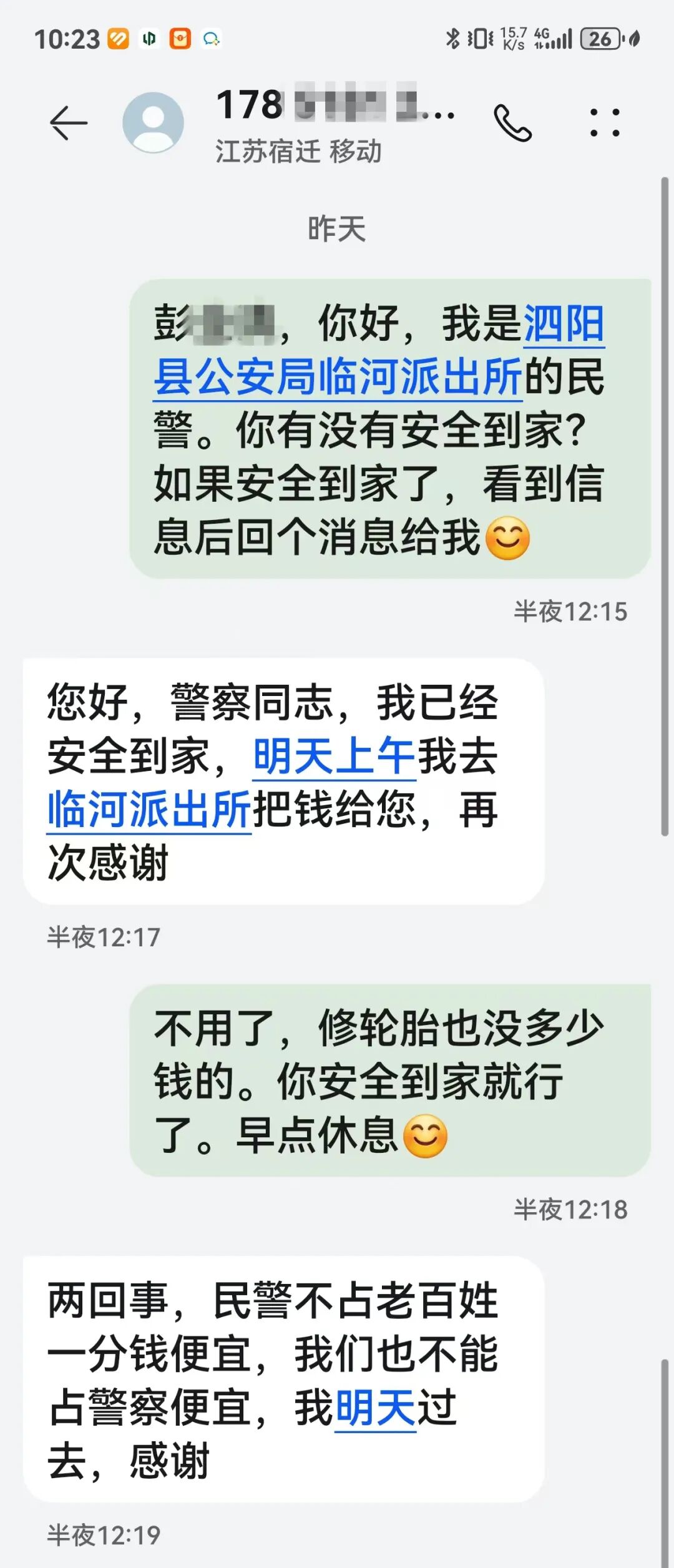 待轮胎修好后民警驾驶警车先将彭先生送到他损坏车辆的停放处随后又一起动手合力将新轮胎装好看着车辆恢复正常彭先生脸上终于露出了感激的笑容不停向民警比划着感谢的手势