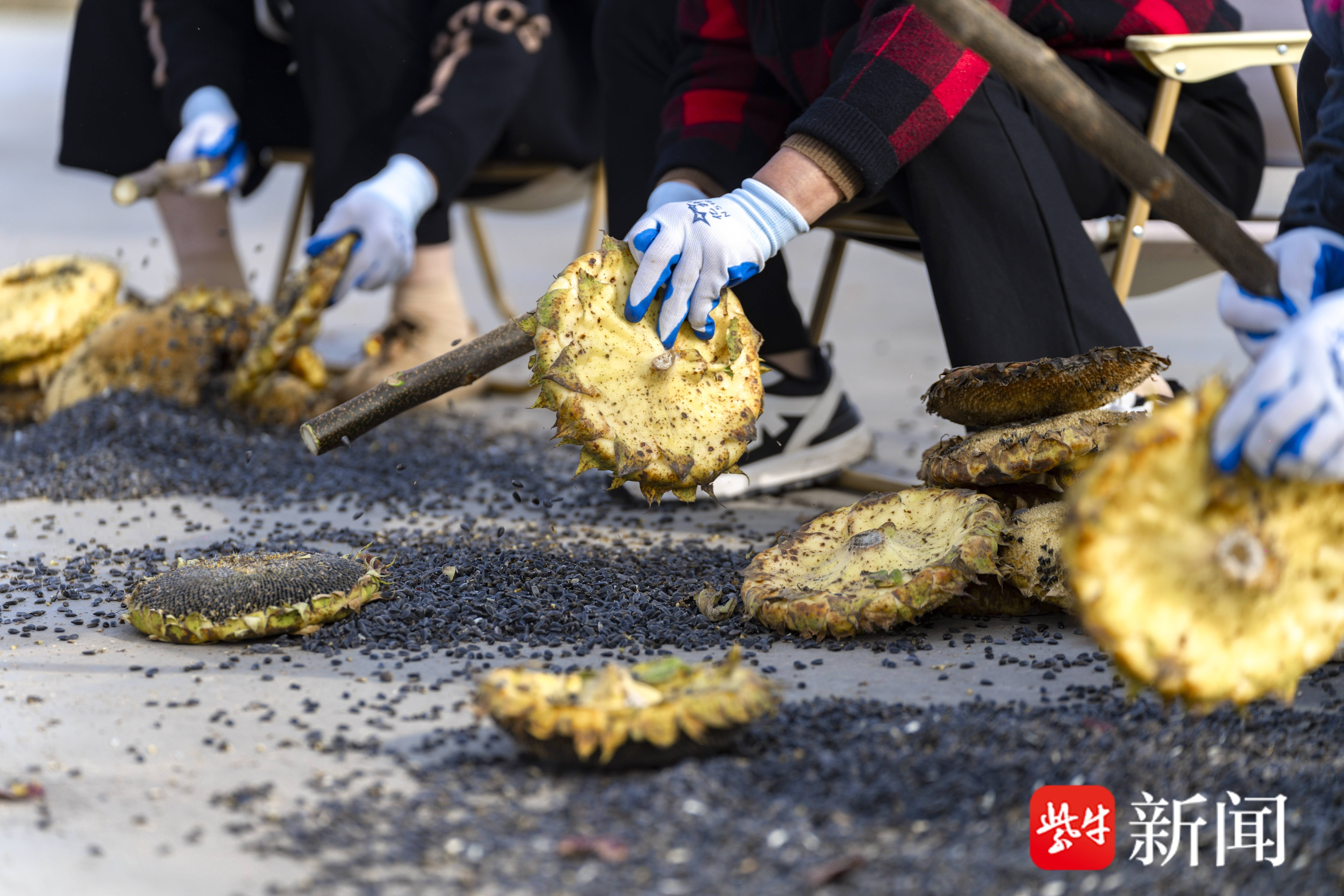 活动在热火朝天的“巧手锤葵”大赛中拉开序幕。姐妹们手持传统木槌,在农场晒场上敲打出欢快的丰收节奏。金色葵盘应声裂开,饱满的籽粒如雨落下,现场洋溢着丰收的喜悦。经过激烈角逐,评委依据速度与完整度,评选出了一、二、三等奖及纪念奖。