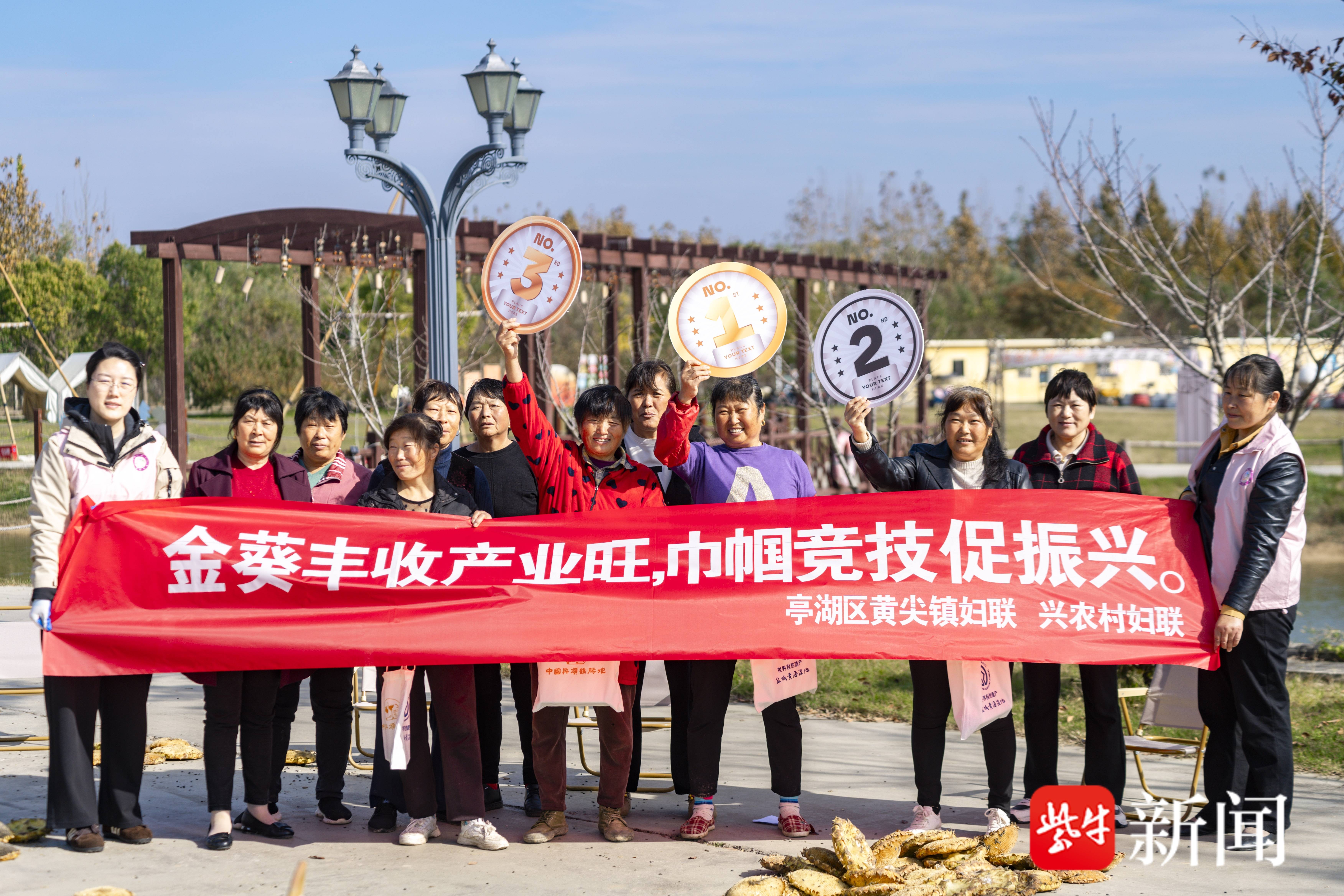 连日来,盐城市亭湖区黄尖镇兴农村千亩葵田的秋收工作已圆满收官。为庆祝丰收、凝聚巾帼力量,镇妇联紧抓农闲时机,在兴农村村办集鹤龙农场组织开展了以“金葵丰收产业旺,巾帼竞技促振兴”为主题的特色活动。本次活动巧妙融合农事竞赛与文旅体验,全面展现了农村妇女在推动产业升级和乡村振兴中的“半边天”风采与力量。