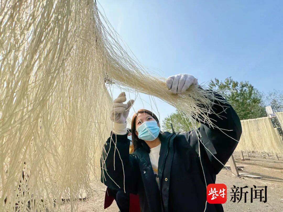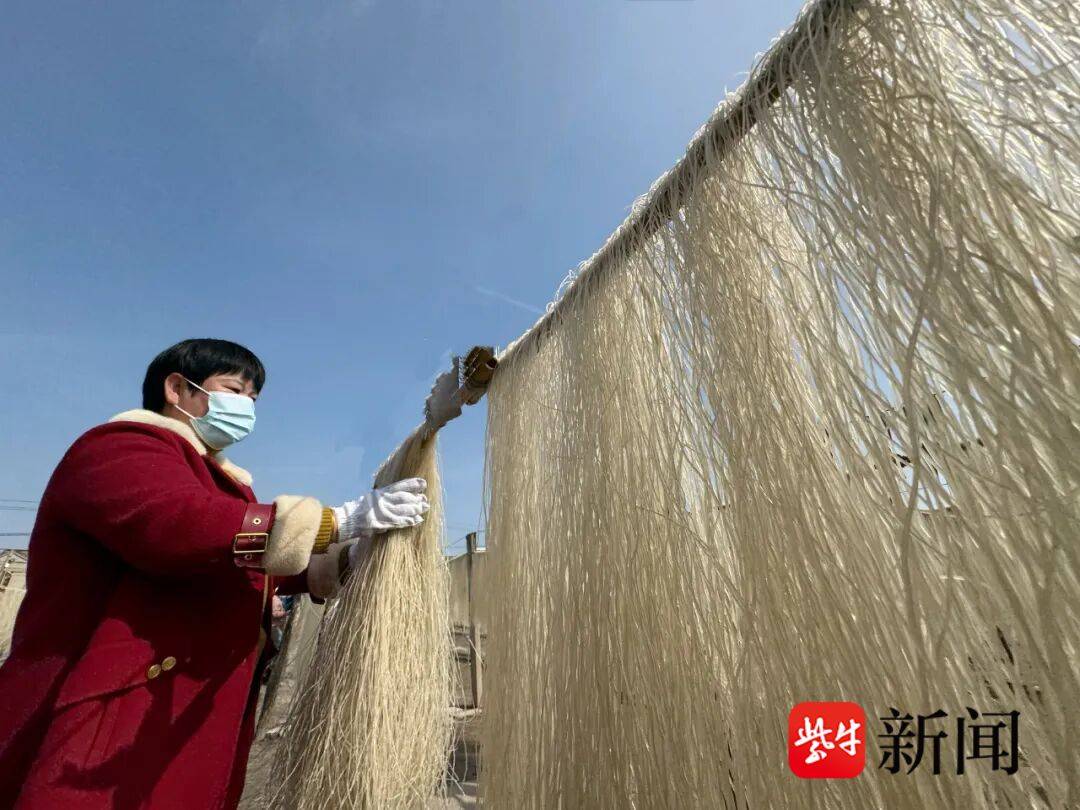 “每年深秋到年底本就是销售旺季,加上双十一临近,现在厂里从晾晒、生产到打包、直播,全环节都在满负荷运转。” 云燕粉丝厂董事长季翠平笑着掀开原料筐,露出饱满的本地红薯,“我们做‘赵集粉丝’快 20 年了,一直坚持传统手工工艺,选料、制浆、漏粉、晾晒,每一步都不敢含糊。就靠这口正宗口感,常年供往上海、浙江,每天稳定卖 2 万斤。为了应对双十一订单高峰,我们提前加了晾晒架,工人分成两班倒,连老天爷都帮忙 —— 最近秋高气爽,晒出的粉丝口感最佳!” 她指着晒场上新增的几排架子,语气里满是期待:“以前每天晒 1 万斤,现在翻了倍,就怕旺季供不上货。”