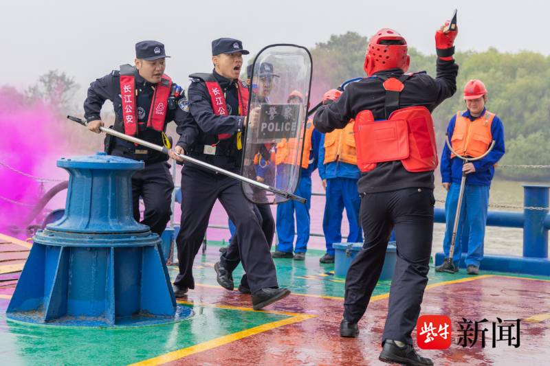 扬子晚报网11月7日讯(通讯员 濮方杰 王晓川 记者 姜天圣)“张警官,我知道那是盾牌,但是那个叉子形状的是什么,能教教我们怎么用吗?”11月7日上午,长航公安局镇江分局镇江派出所联合分局实战部门在长江江苏镇江段高桥水上绿色综合服务区开展了一场全流程、强协同的水上综合应急演练,全面提升民警应对各类突发情况的能力。