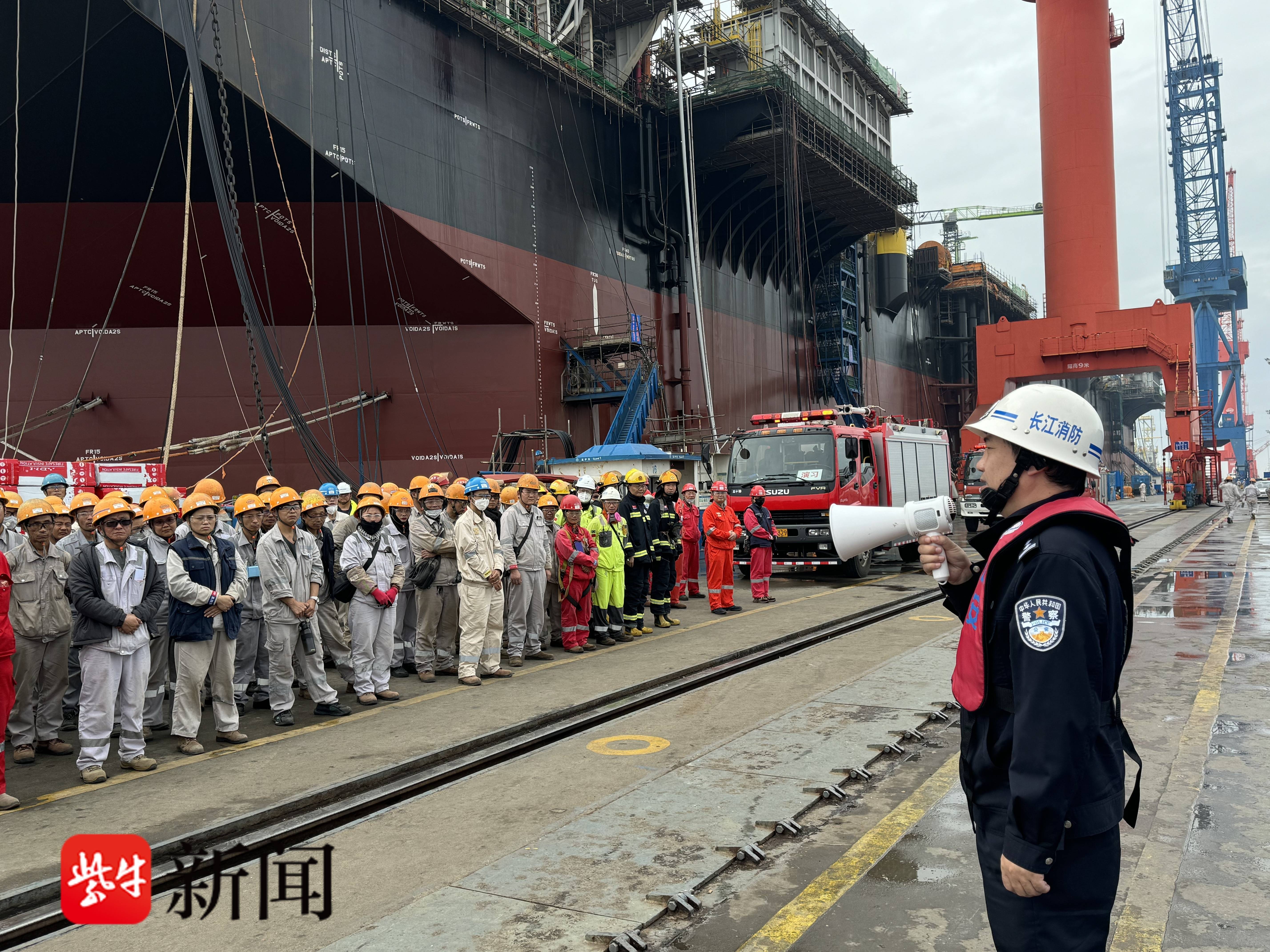 在竞技与演练之外,定制化培训精准发力,为企业发展注入安全动能。“动火作业前要检查哪些设备?电气故障引发火灾该如何初期处置?”10月28日,长航南通公安民警走进上海振华重工南通分公司,为100余名职工带来“识风险、懂预防”专项消防培训。民警以典型火灾案例为切入点,详解火灾成因、预防要点,并现场指导灭火器材使用、疏散逃生技巧、初火扑救方法,让职工“听得懂、学得会、用得上”。11月5日,长航南通公安再与南通振华重型装备有限公司开展主题党日共建活动,通过“联学理论、联建队伍、联创机制”,精准对接企业安全需求,为沿江营商环境筑牢安全根基。“重工企业是水域消防的重点领域,抓好员工安全意识提升和现场管理,才能守住长江水域安全的‘关键一环’。”长江航运公安局南通分局水上消防支队支队长姜韦表示。
