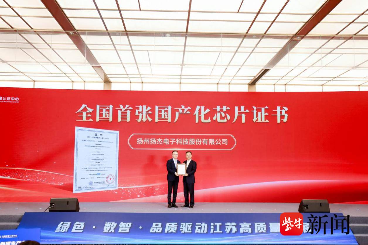 认证服务正从幕后走向台前,成为驱动江苏高质量发展的核心基础设施。大会现场,扬州扬杰电子科技获得了中国质量认证中心颁发的全国首张芯片(半导体器件)国产化证书。至此,在被视为“工业粮食”的芯片领域,产业链上下游携手建立起科学的国产化合格评价体系。