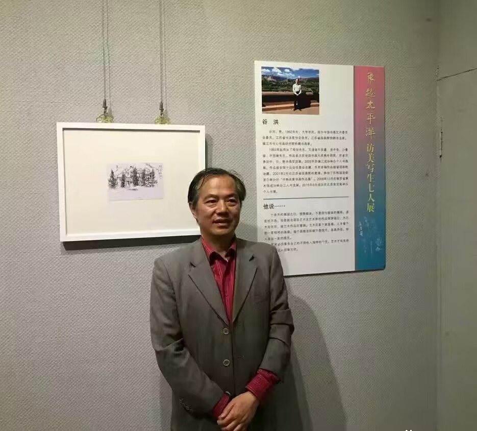 此次展览以 “心迹天地” 为主题,正如序言所云,参展作品 “不拘泥于传统技法程式化演绎”,而是 “以个性笔墨语言表达山水符号之心迹转换”,集中呈现了画家们在传统与现代之间的艺术探索。作为参展核心画家之一,谷洪 1962 年生于江苏盐城,1983 年起师从著名书画家丁观加先生,后又得祝嘉、武中奇、沙曼翁、许图南等名家指点,在书法与山水画领域积淀了坚实功底。如今,他身兼江苏省书法家协会会员、中国书画艺术委员会委员等职,作品多次在全国书画大奖赛中获奖,还曾赴中、日、韩、美、英、法等国参与书画交流展,多幅作品被江苏省国画院等专业机构收藏。