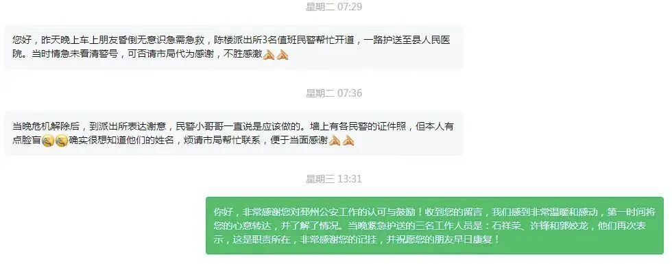 三位辅警表示感谢