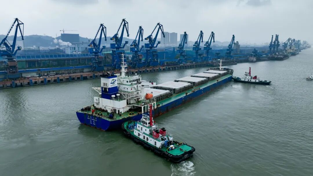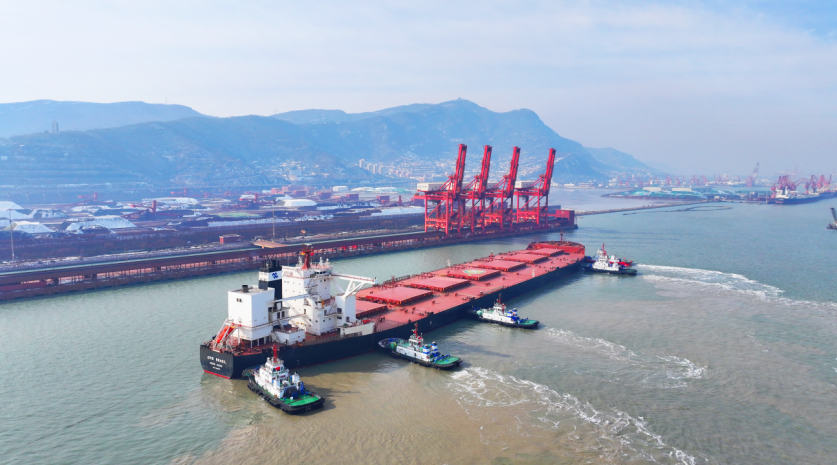 (40万吨矿石船“希纳”轮靠泊连云港港88号泊位 来源:“连云港交通”微信公众号)