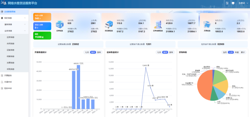2024年9月,在全国率先开展网络平台水路货物运输试点。网络水路货运监测和综合服务平台(一期)于2025年6月上线试运行,主要功能为监测和保证交易的真实性以及网络水路货运平台企业行为的规范性。截至目前,平台接入了28家平台企业,归集了2060家托运人、211家企业承运人、31384个体承运人和 30406艘船舶数据。通过平台开票运单数55151单、累计开票额27.26亿元。