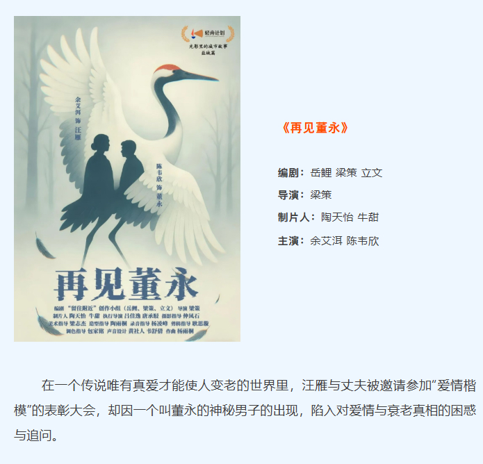 11月12日至13日,盐城首个“影视+”深度融合项目“轻舟计划”孵化的《粉墨》《候鸟人》《老爹面子仗》《再见董永》四部短片,将在第38届中国金鸡百花电影节集中推介。