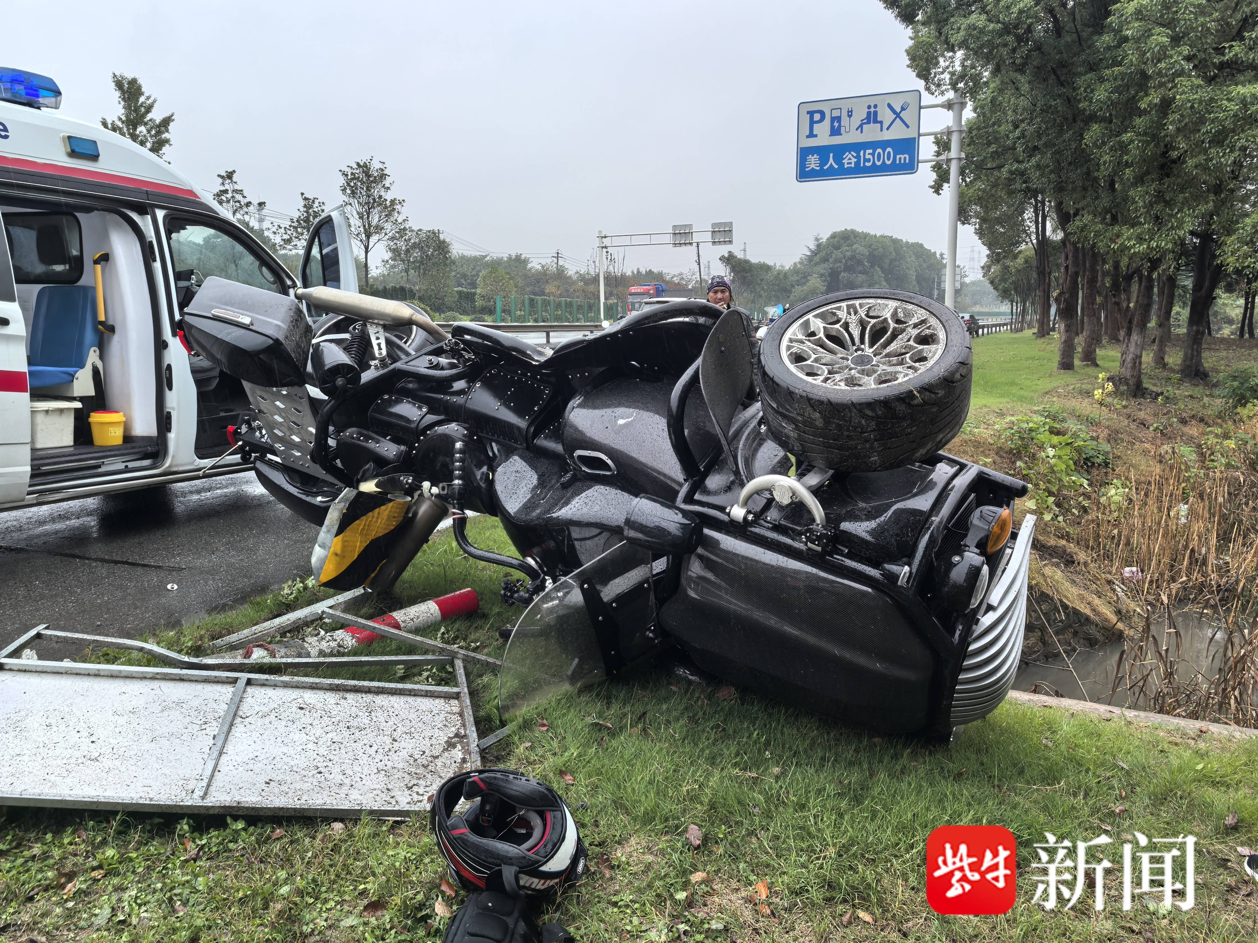 事情要追溯到11月9日,当时,天空下着淅淅沥沥的小雨,路面湿滑能见度较低。韩先生和朋友驾驶着自己的全球限量版摩托车沿243省道高资圆通寺段行驶时,因雨天路滑,车辆与护栏发生碰撞失控侧翻,二人当场摔倒在地,且腿部和手臂均不同程度受伤,摩托车也翻倒在路边绿化带里,部分零部件受损。