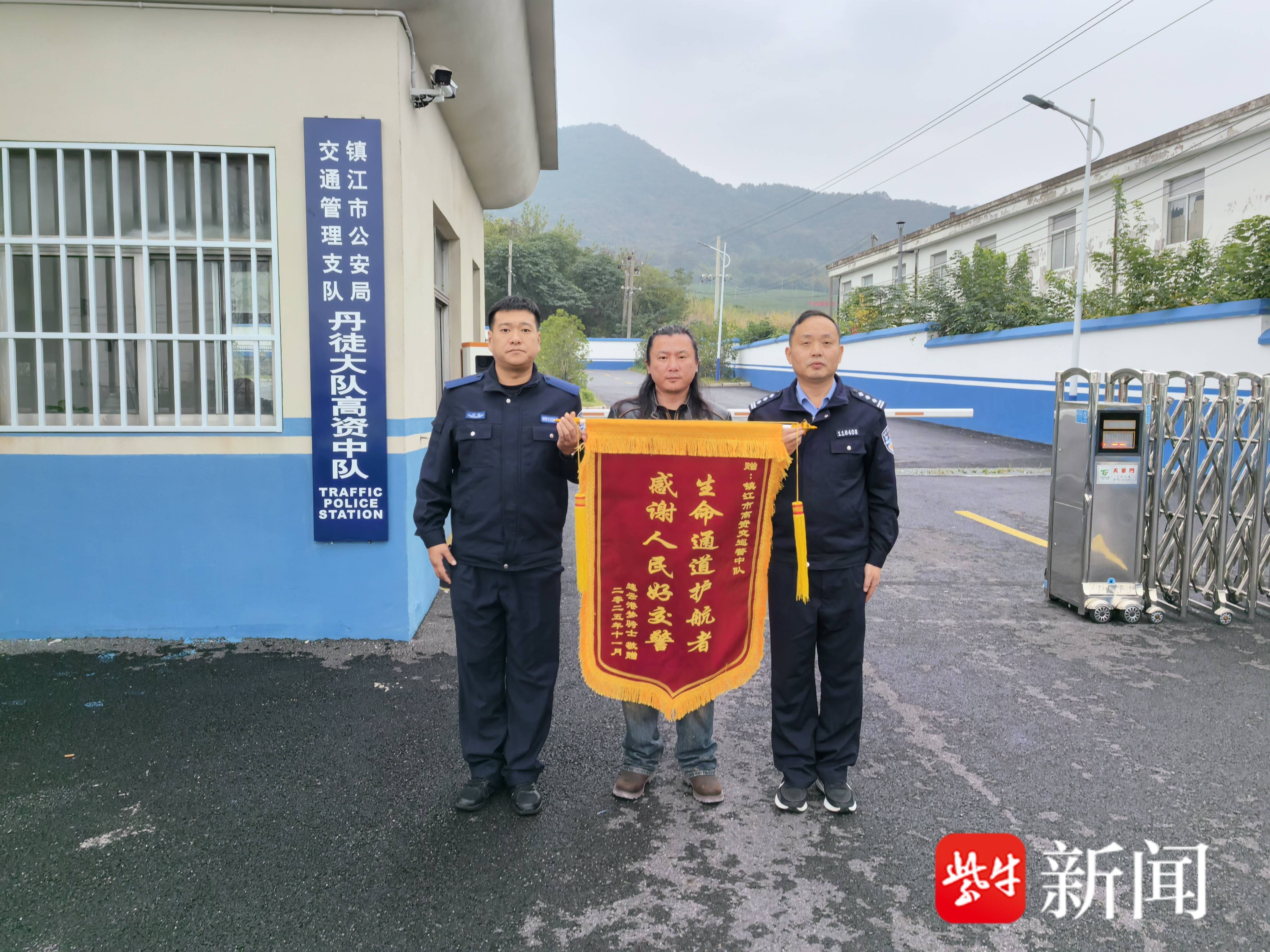 扬子晚报网11月11日讯(通讯员 张进 於荣荣 记者 万凌云 姜天圣)“真是太感谢你们了!不仅在雨天及时救了我们,还这么用心保护我的摩托车,你们的尽责让我们特别感动!”11日,镇江市民韩先生将一面印着“生命通道护航者 感谢人民好交警”的锦旗送到丹徒交警大队高资中队,紧紧握住执勤交警的手,再三表达感激之情。