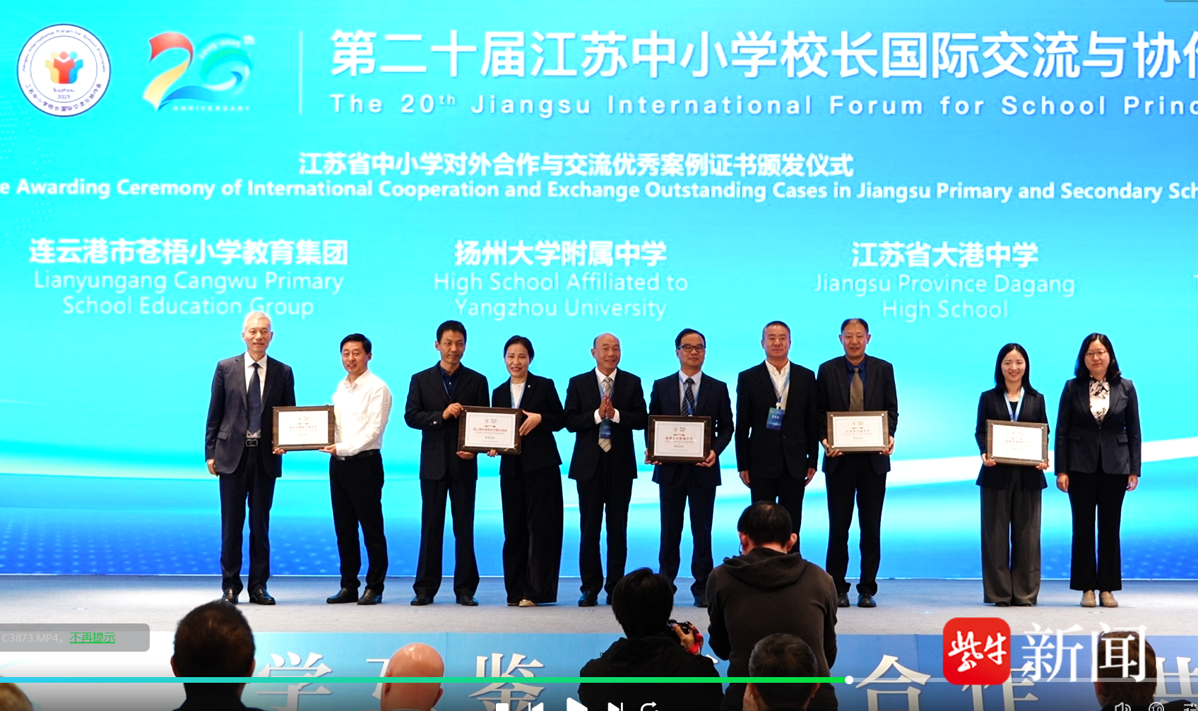 扬子晚报网11月12日讯(通讯员 庄旭 记者 万凌云 姜天圣)近日,江苏省中小学对外合作与交流优秀案例评选结果揭晓,江苏省大港中学报送的《厚植姊妹学校情谊,培养未来世界公民》案例成功入选,全省仅10项案例获此荣誉。大港中学黄卫荣校长代表学校参加颁奖典礼。