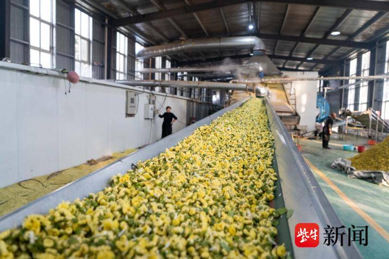 从田间采收的新鲜杭白菊,很快便被运往岚山镇中草药产业园内的永昌花茶有限公司。走进加工车间,烘干设备的轰鸣声此起彼伏,工人们正忙着对鲜菊进行筛选与打包作业。