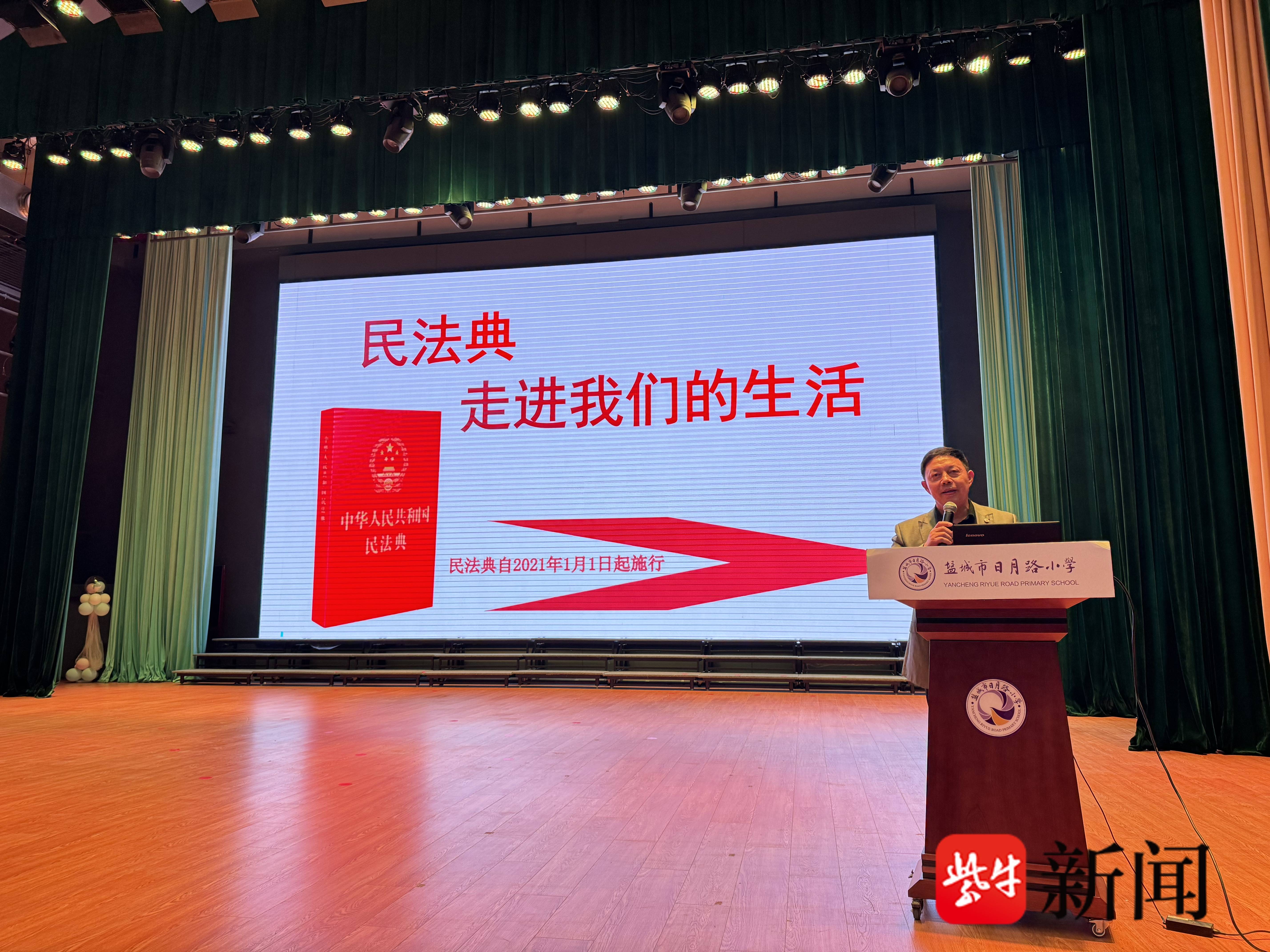 近日,盐城市盐南高新区总工会在日月路小学剧场开展“法护成长·‘典‘亮未来”主题普法活动,邀请区总工会法律顾问张红星律师为一百余名师生带来一堂生动的《民法典》专题宣讲课。活动通过“法律解读+互动实践+成长激励”的创新模式,将法治教育与职工子女成长需求深度融合,同时向学生代表发放定制学习礼包,以“法治护航+资源赋能”双轮驱动,助力职工子女全面发展。